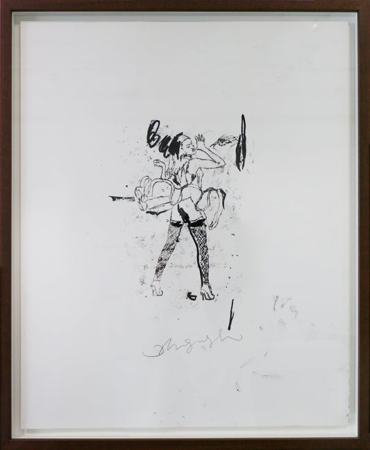 Never one to be bound by conventions, ‘A Cutters Choice’ by Danny Augustine presents us with an eclectic set of cowboys, Twombly scribbles and his signature print work, unburdened by concerns of about what art, especially contemporary art, is supposed to look like. Instead, the exhibition primarily explores the act of making; ‘The piece is second to the actual feeling of the thing, there is so much more that is left- material and immaterial- than what ends up on the page,’ Augustine explains. This approach makes this exhibition an active one, inviting spectators to wonder what was left on the cutting floor, or perhaps if the pieces are comprised of the ‘scraps’ of other artworks collated into coherence by the artist.