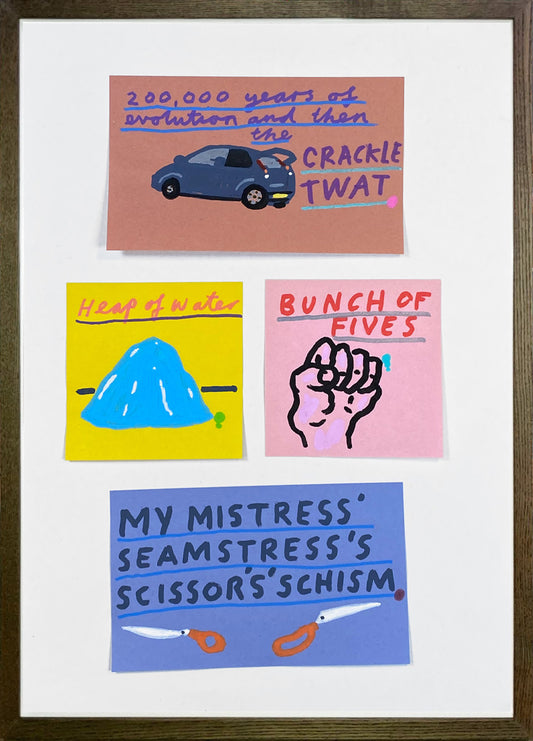 Alongside these paintings, Paul Davis has also allowed us to show a selection of drawings on paper. For Davis these drawings act as an obsessive diary of remembered and overheard moments depicted on paper, which reveal a truth that can all too easily be overlooked. Created in response to nature’s most explosive power as a catalyst for life itself, Jealous are also exhibiting two volcano limited edition prints, ‘Yes Volcano’ and ‘No Volcano’.
