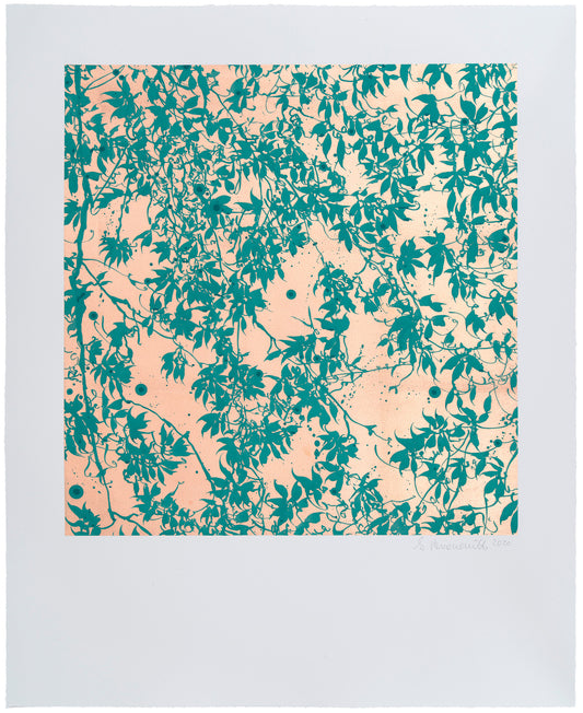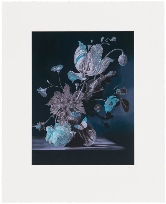 The works in the portfolio cover a wide range of mediums, themes and imagery, distinctive to each artist. Michael Craig-Martin has created a screenprint depicting gerbera flowers in his characteristic bold, iconic style. Yinka Shonibare CBE incorporates gold leaf into his print to illustrate a symbolic tulip that sits under the words ‘thank you’. Sue Arrowsmith's copper leafed print resonates with green ink that changes in the light. Paul Winstanley offers us a lily, a symbol of hope in these strange times. Nicky Hirst's print is taken from her elemental works, an ongoing series of found objects and paired pages from books and magazines. Mathew Weir's delicate still life entitled 'The Watching Hour' is brought to life with snippets of glow-in-the-dark ink. Paul Morrison's 'Night Pond' is a debossed version of a signature black and white image and Elizabeth Mcgill captures an evocative landscape.