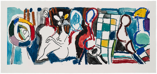 Annie Morris, who often draws on the history of art, presents 'Flower Woman (after le déjeuner sur l'herbe)'. A portrait of the Dali Lama realised in glow-in-the-dark inks by Chris Levine is entitled 'Compassion'. Jake and Dinos Chapman's smiley face is illustrated in glitter in three different colours. Idris Khan has obscured the notations on a sheet of music with densely applied areas of blue to make a work entitled 'Four Bar Rhythm' and Paul McDevitt presents an interpretation of a brick wall. Abstract compositions exploring line and colour are realised in signature works by Ian Davenport and 'No Consequence' by Remi Rough is printed directly onto plywood.