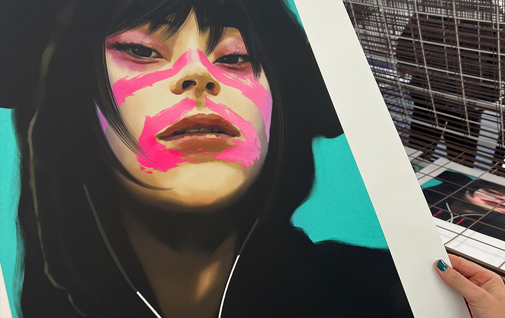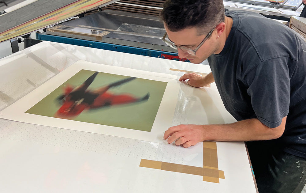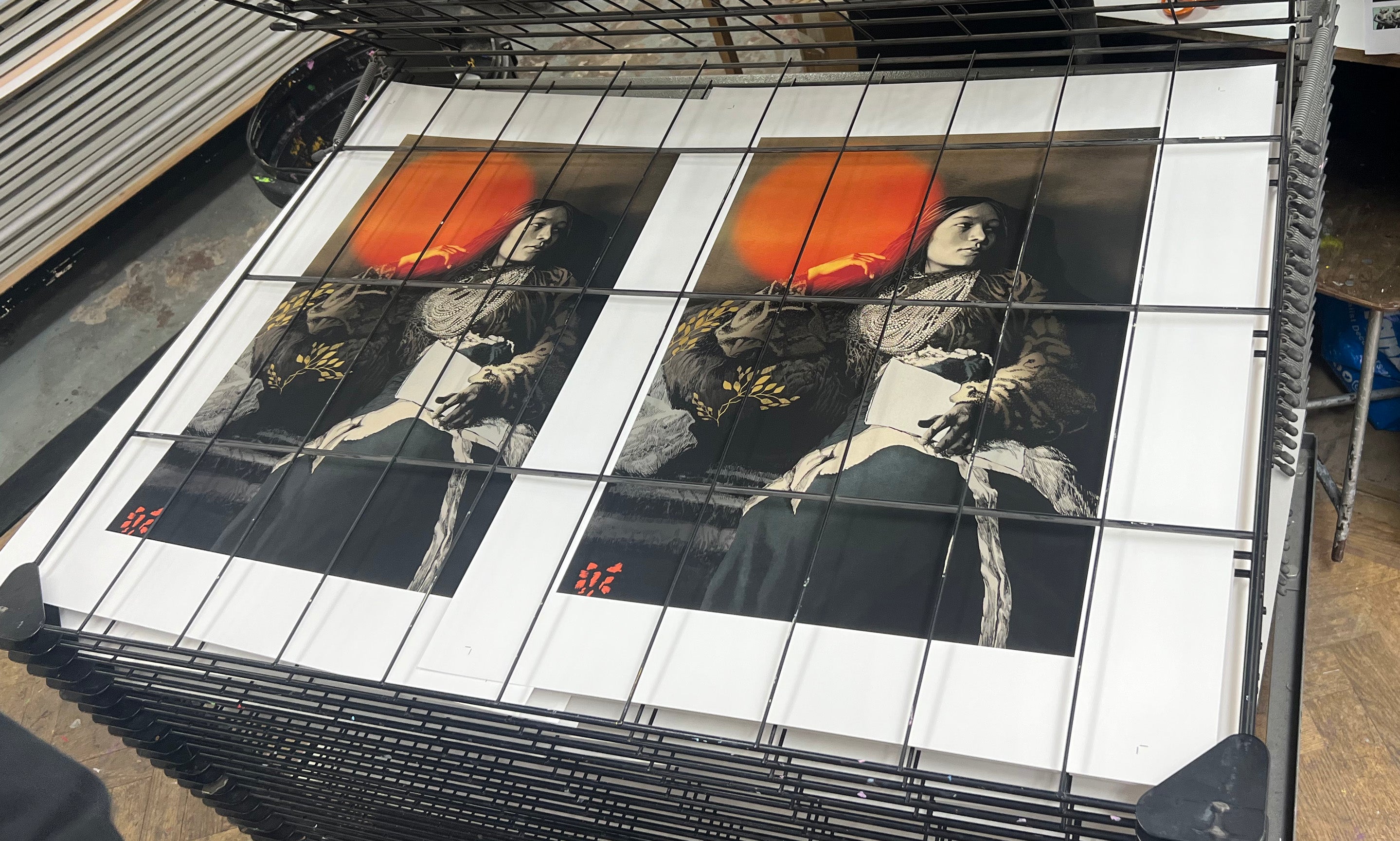 For the past few years there has been a growing interest in hybrid printing and at Jealous we are seeing many more artists experimenting with this exciting combination of screenprint and digital. This allows us to add silkscreen layers to your digital editions, be they fluorescent colours, metallic inks, diamond dust or simple spot varnishes to move your digital editions into a direction you perhaps hadn’t considered. This can also sometimes be a more affordable option with shorter lead times than full silkscreen projects.