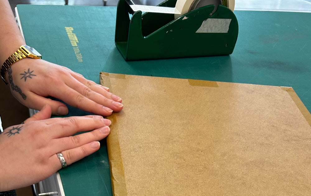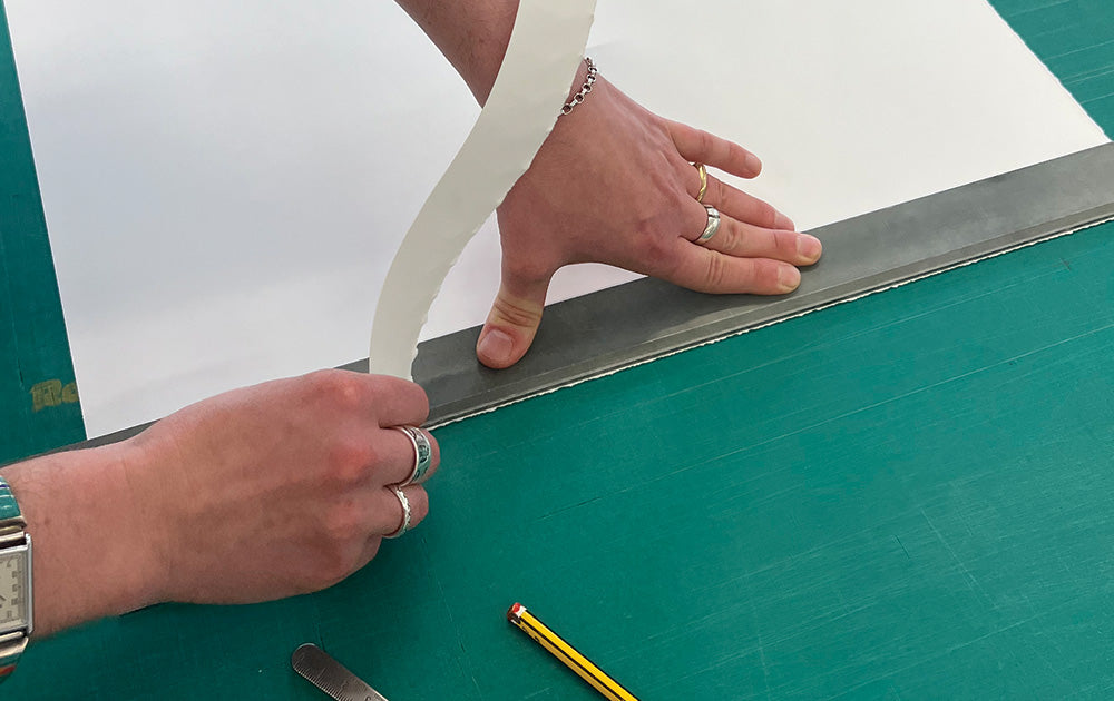 There are a number of finishing options available to make each edition unique, including tearing down the edition creating a soft organic edge, cutting the edition creating a defined edge, and debossing. Debossing creates an indent in a print similar in appearance to the plate mark of an etching. The effect can be used to define the edge of an image or create an outer border around an image, adding depth to the print.