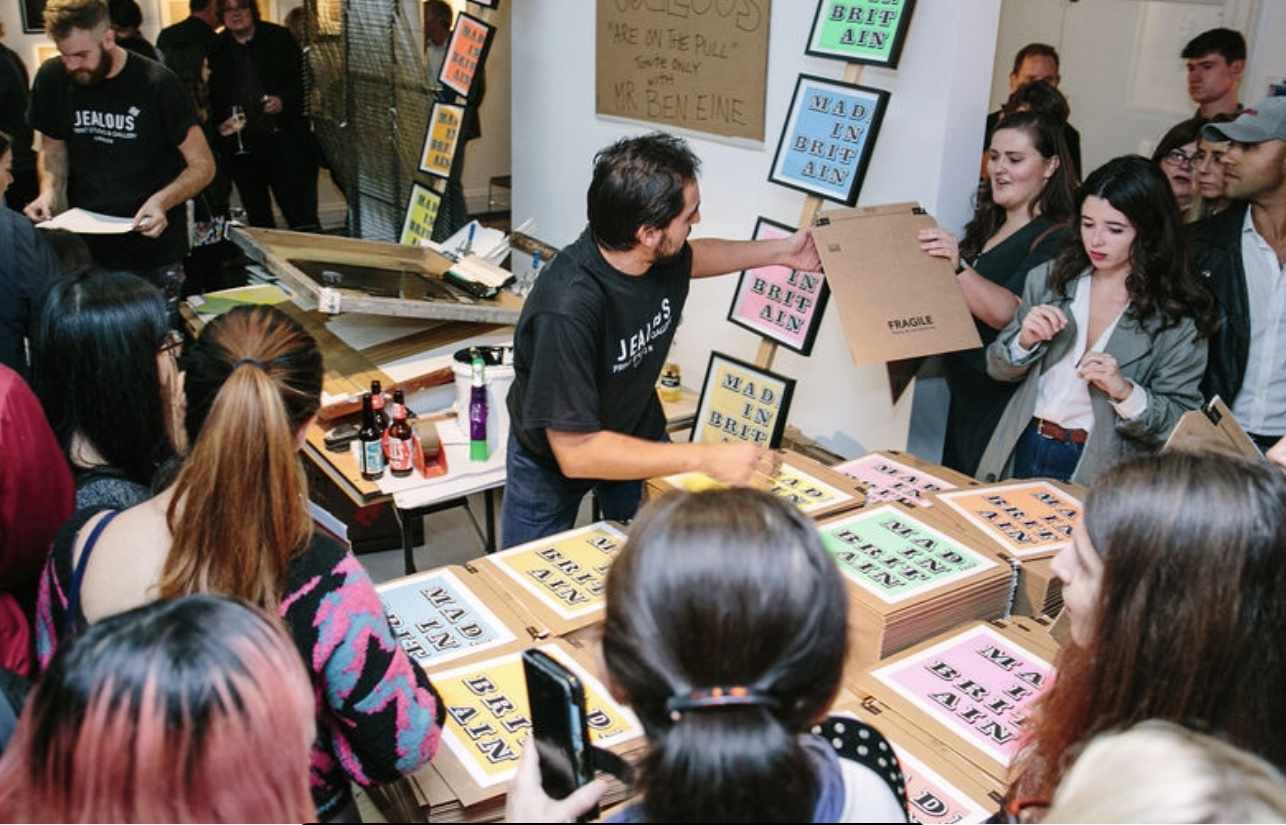 Jealous Takeover services provides you with the best contemporary art to come from Jealous’ Print Studios, so you can host your own Jealous Show in your space. Provided within the service includes working to a brief to curate a selection of work, or management of the whole event, including a live screenprinting event for all visitors to your venue.
