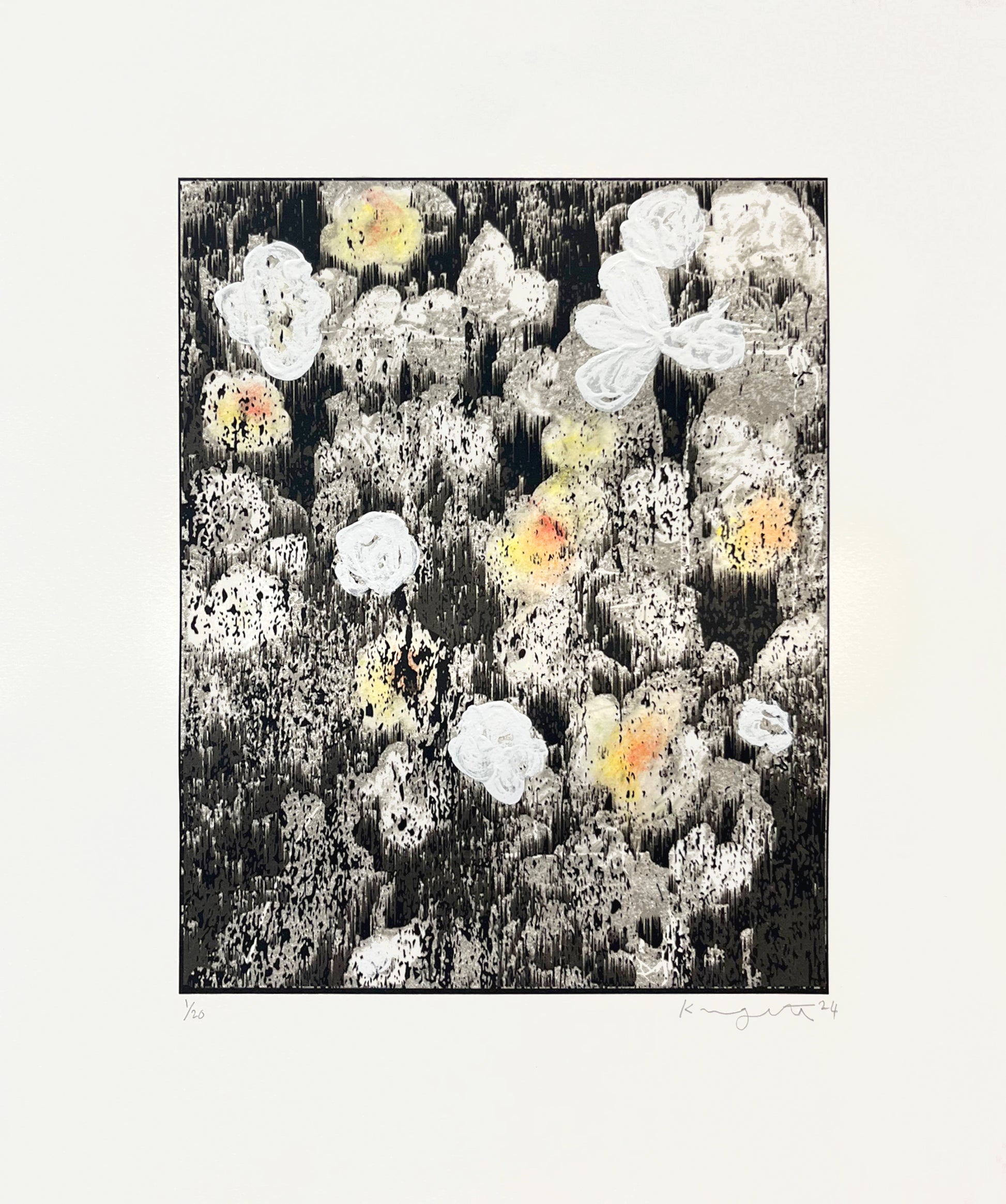 6 Colour Screenprint With Coloured Chalk And White Paint Overlays on Somerset Radiant White 410gsm Paper |