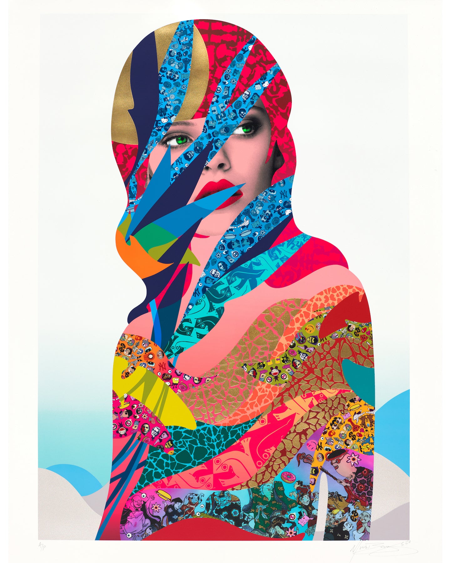 Medium: | Archival Inkjet with 6 Colour Screenprint and Varnish Overlays with 24 Carat Gold Leaf onSomerset Satin Enhanced 330gsm Paper |