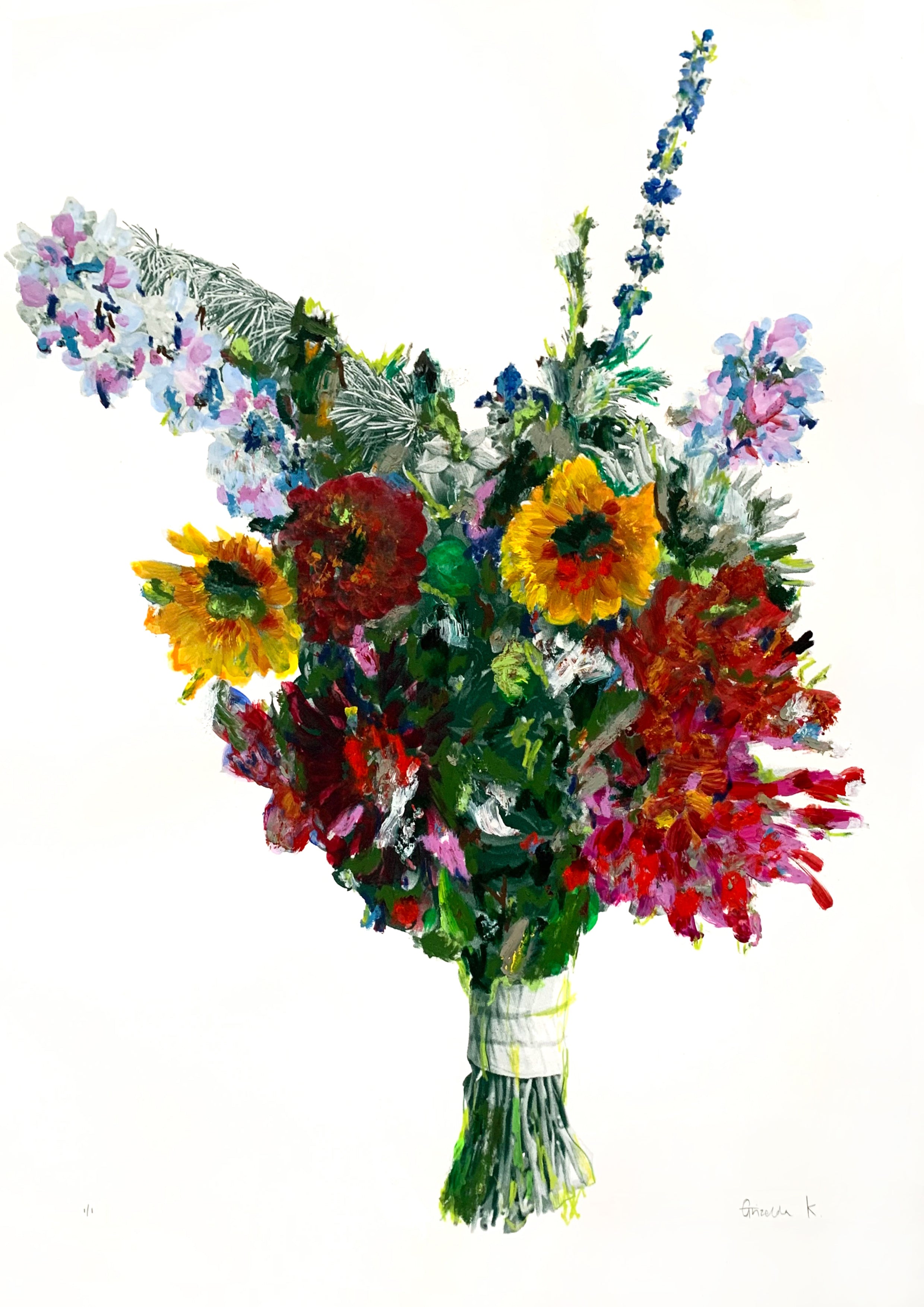 Medium: | 1 Colour Screenprint with Unique Oil Pastel and Paint Overlays on Somerset Satin 300gsm Paper |