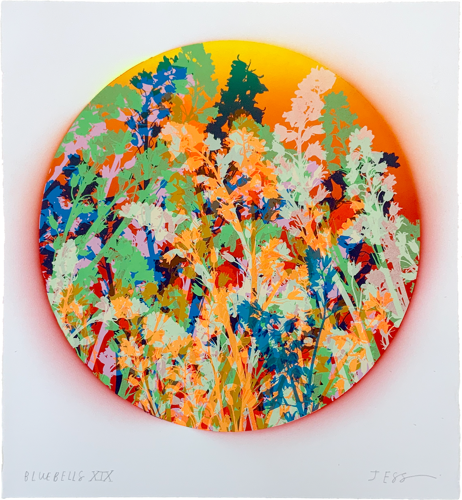 | Medium: | 5 Colour Screenprint With Hand Painted Background on Somerset Satin 300gsm Paper |