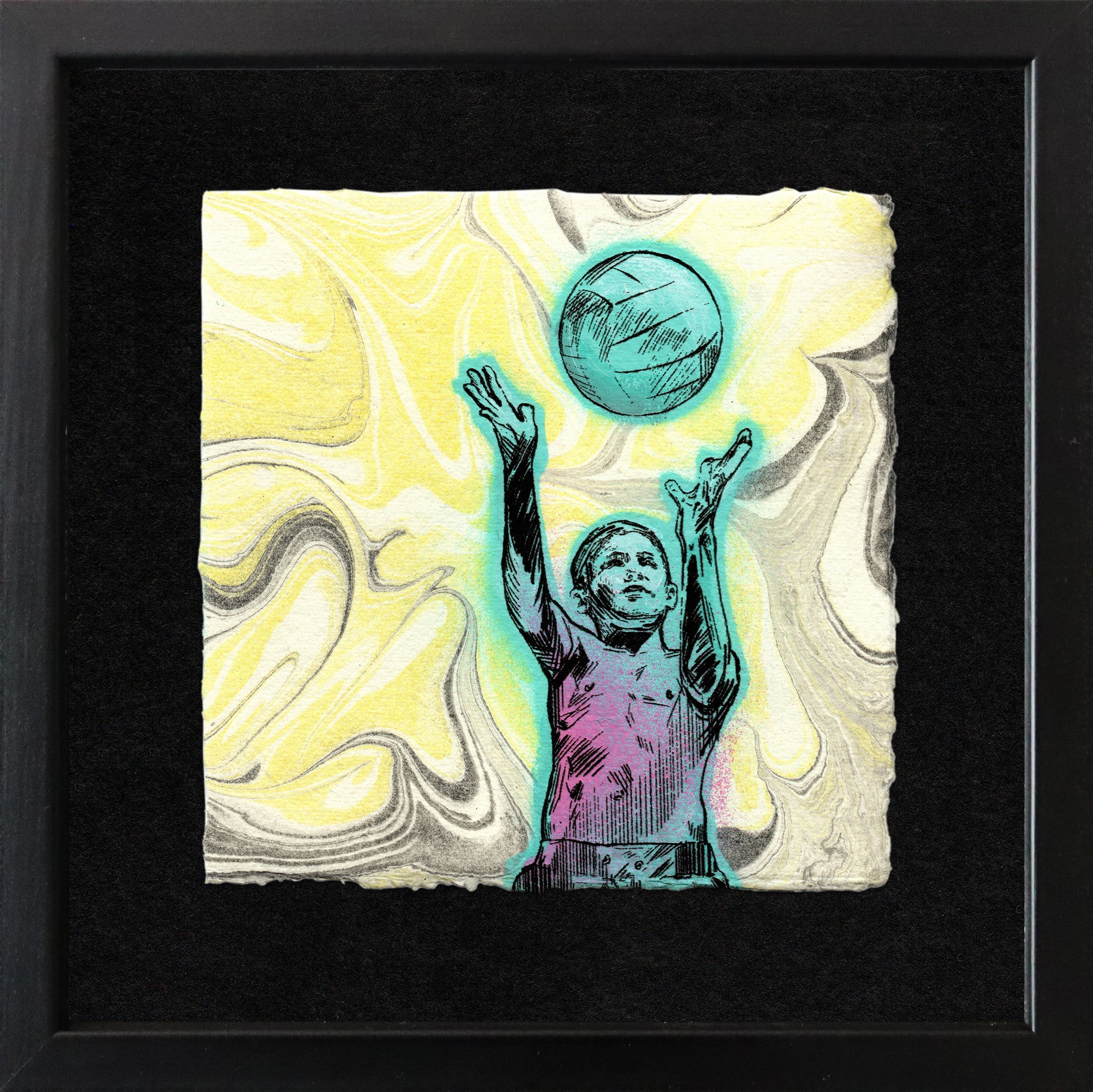 Medium: | Acrylic, Spraypaint and Silkscreen Transfer from Original Drawings on Hand Marbled Cotton Paper |