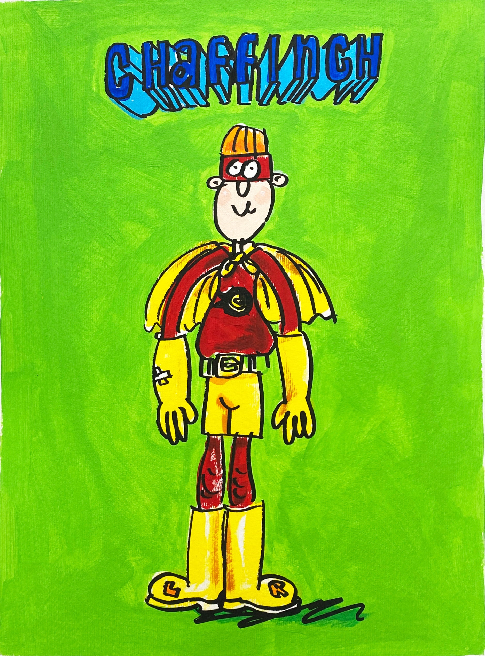 | Medium: | Painting with a 1 Colour Screenprint Overlay on Fabriano Pittura Brilliant White 400gsm Paper |