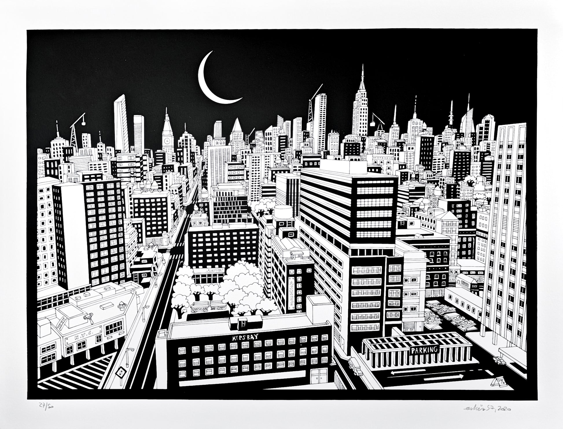 | Medium: | 1 Colour Screenprint on 110 lb White French Paper |