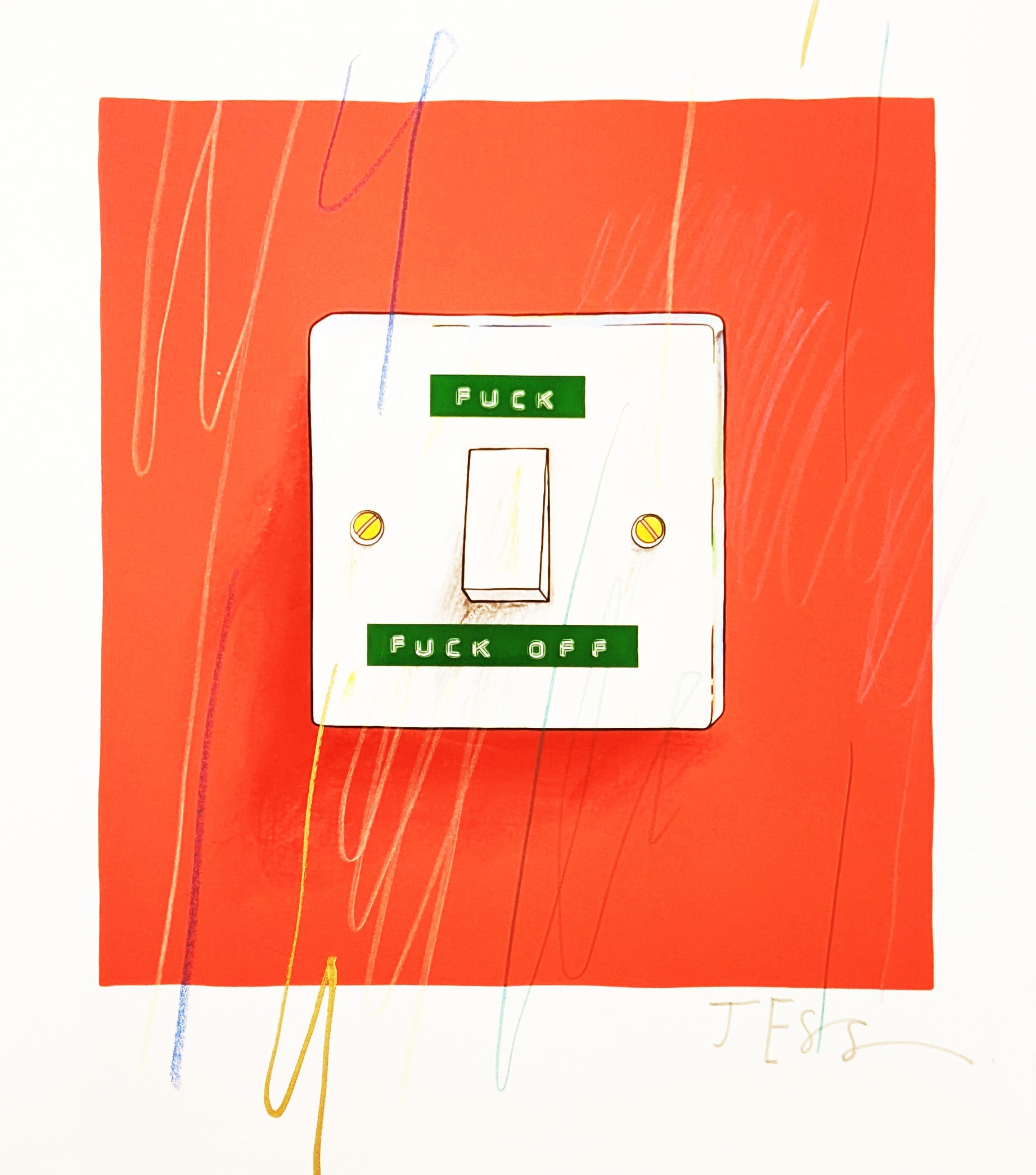 Medium: | Archival Inkjet with Screenprint, Dynamo Label and Hand Finished Crayon Overlays on Somerset Satin Enhanced 330gsm Paper |