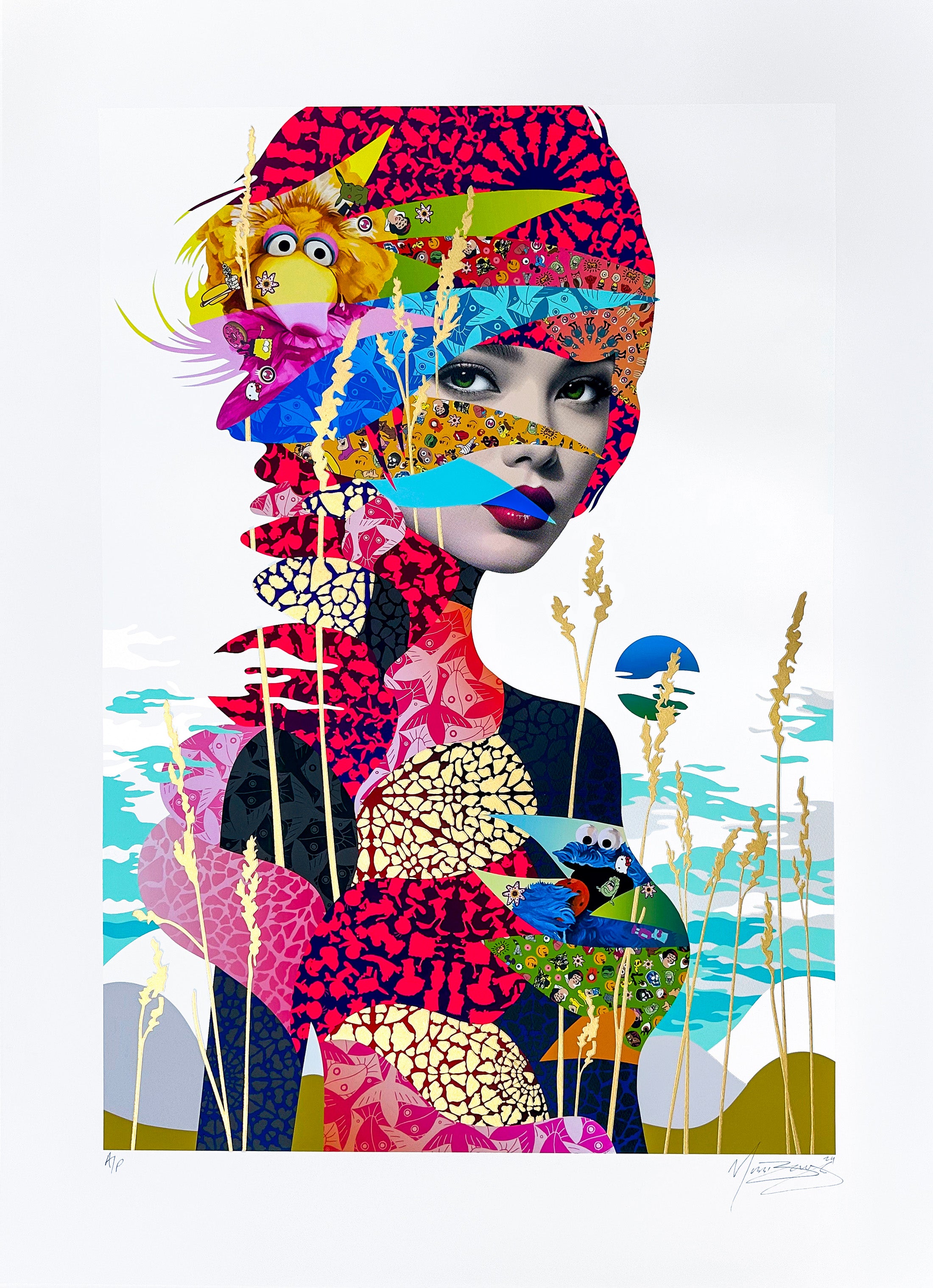 Medium: | Archival Inkjet with 6 Colour Screenprint and Hand-Applied Gold Leaf on 330gsm Somerset Enhanced Radiant White Paper |
