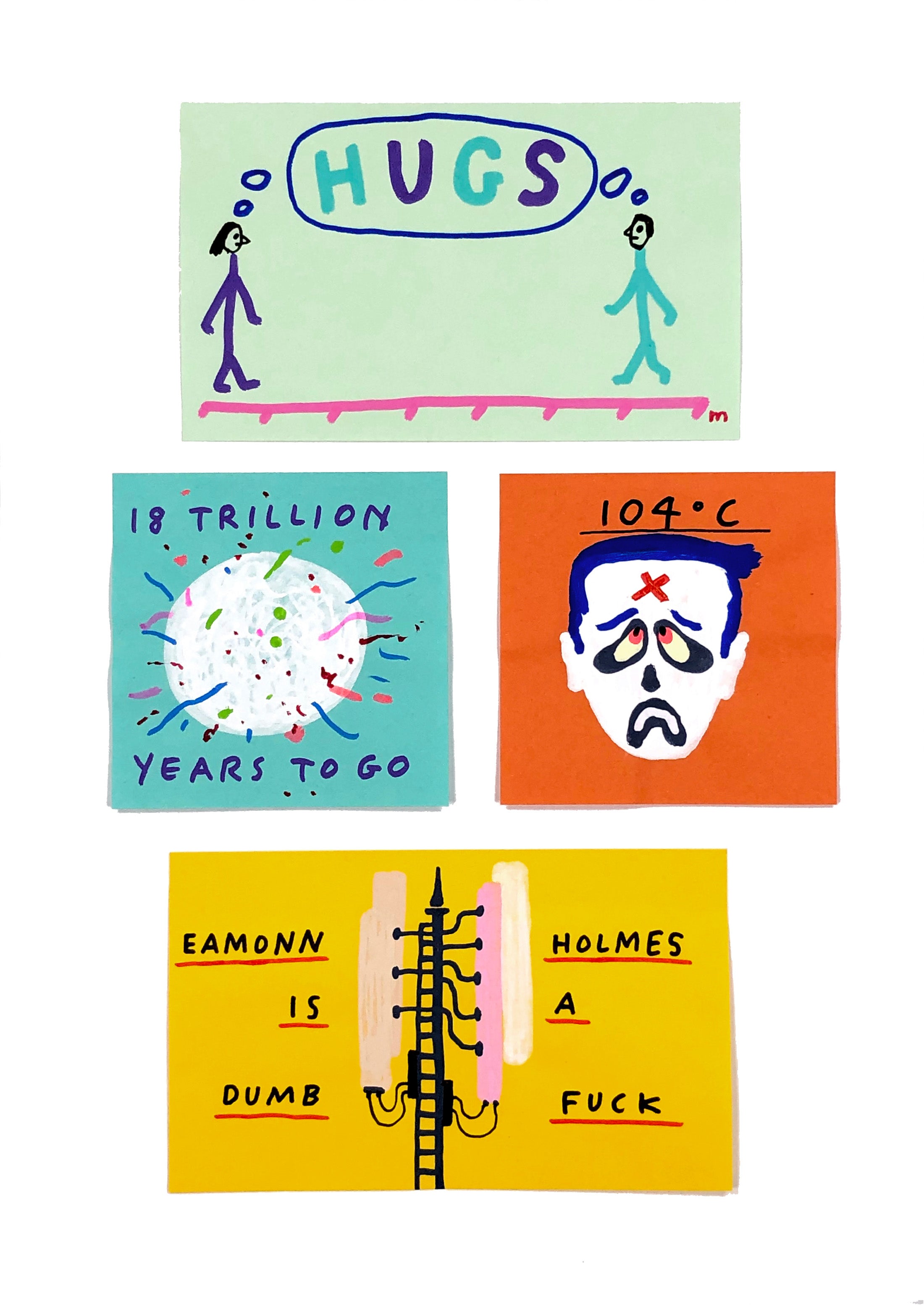 Medium: | Pen, Ink, Acrylic and Pencil on Post-It Notes, Mounted onto A4 Archival 185gsm Paper |