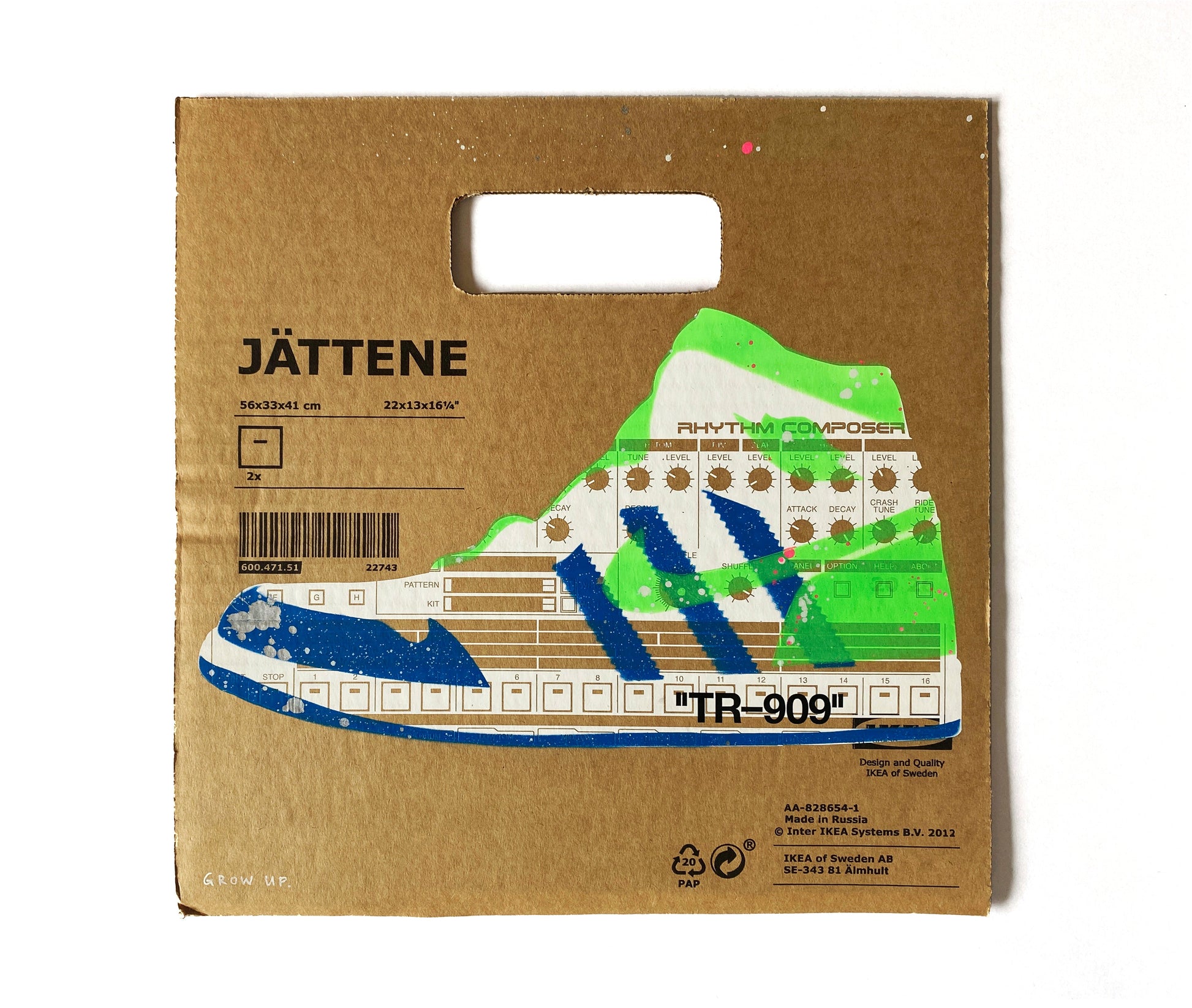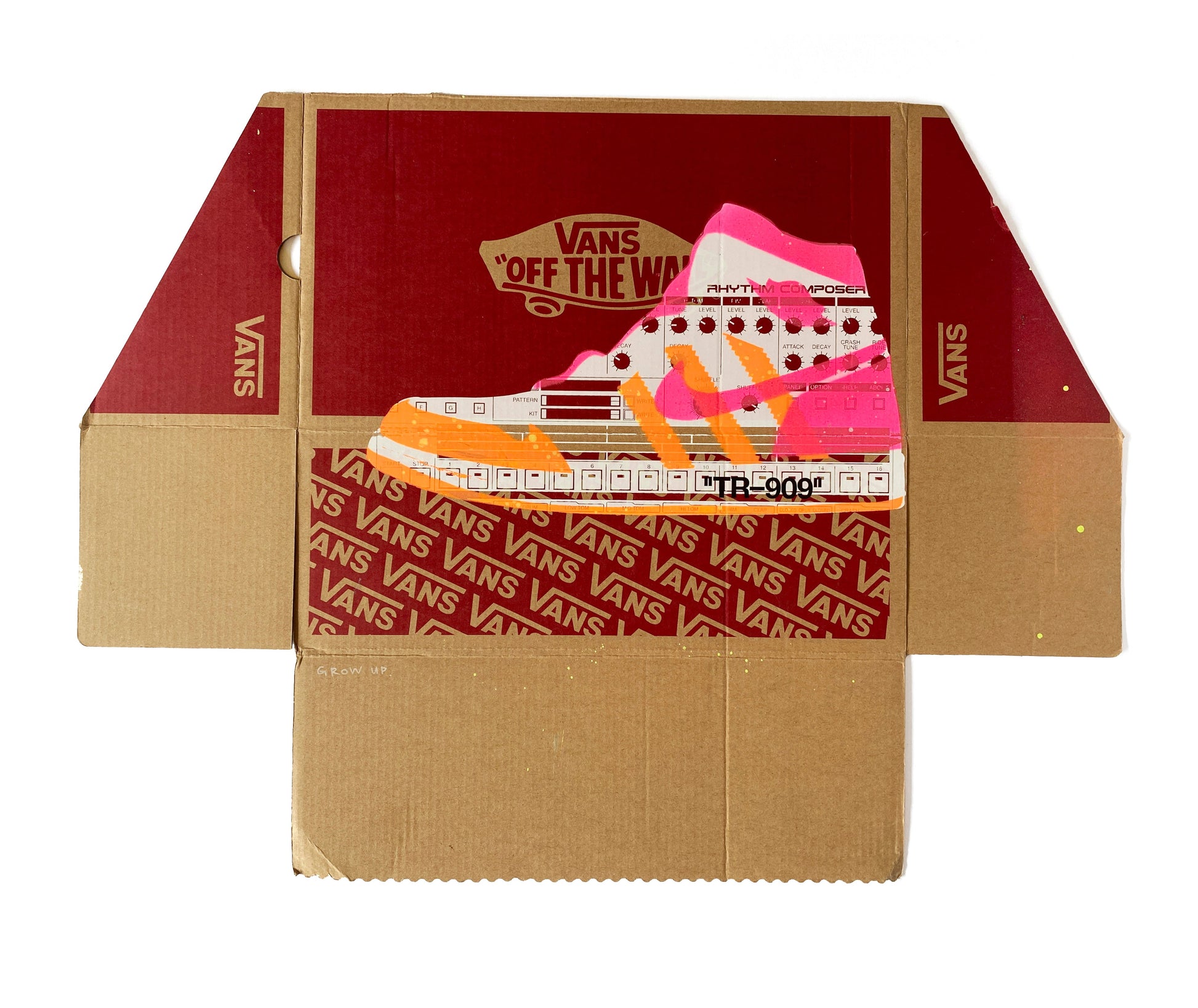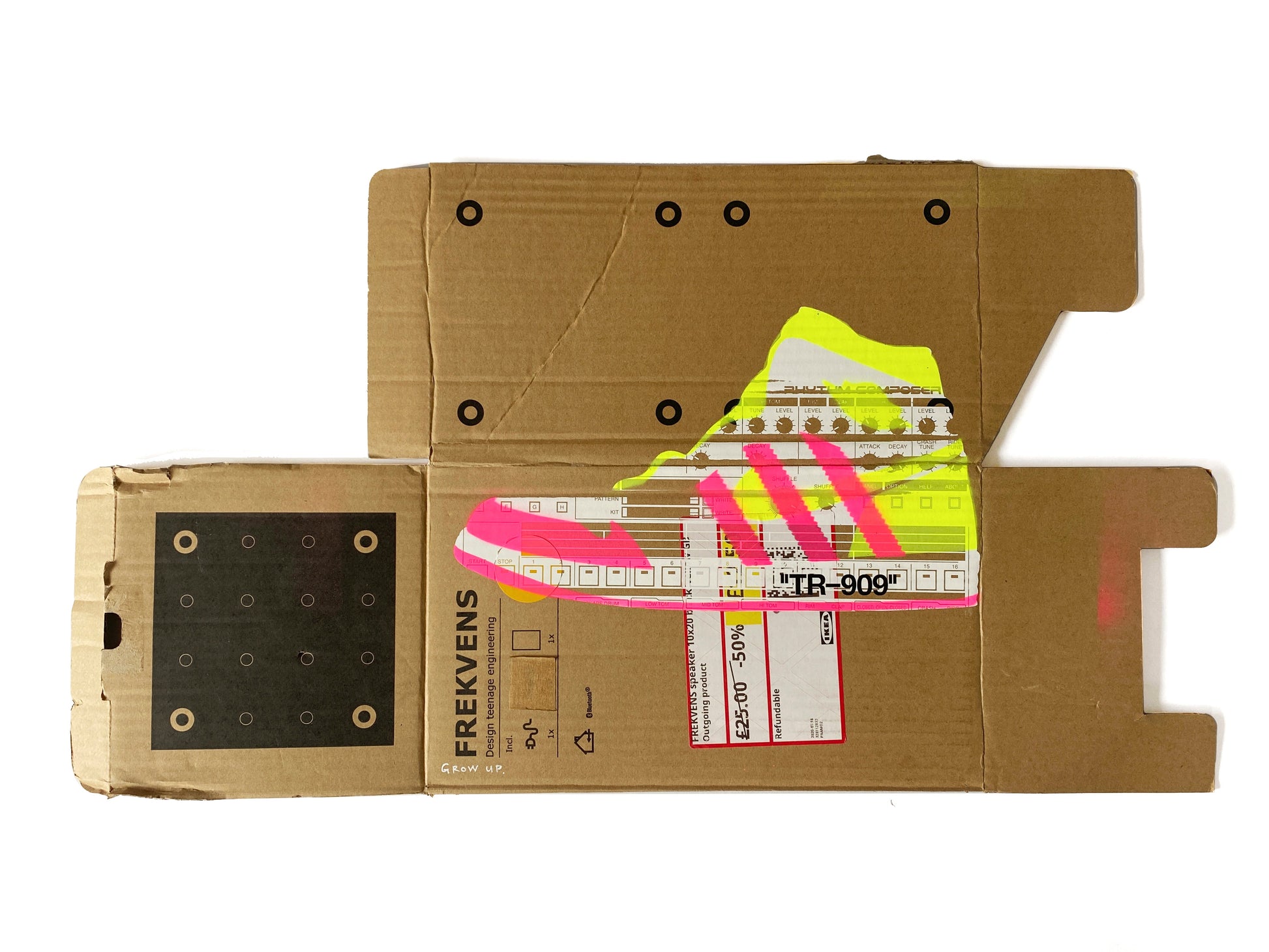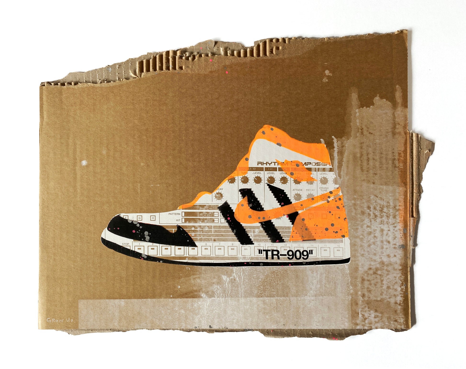 | Medium: | 1 Colour Screen Print with 2 Colour Spray Paint Overlays and Hand-finishing on Recycled Cardboard |
