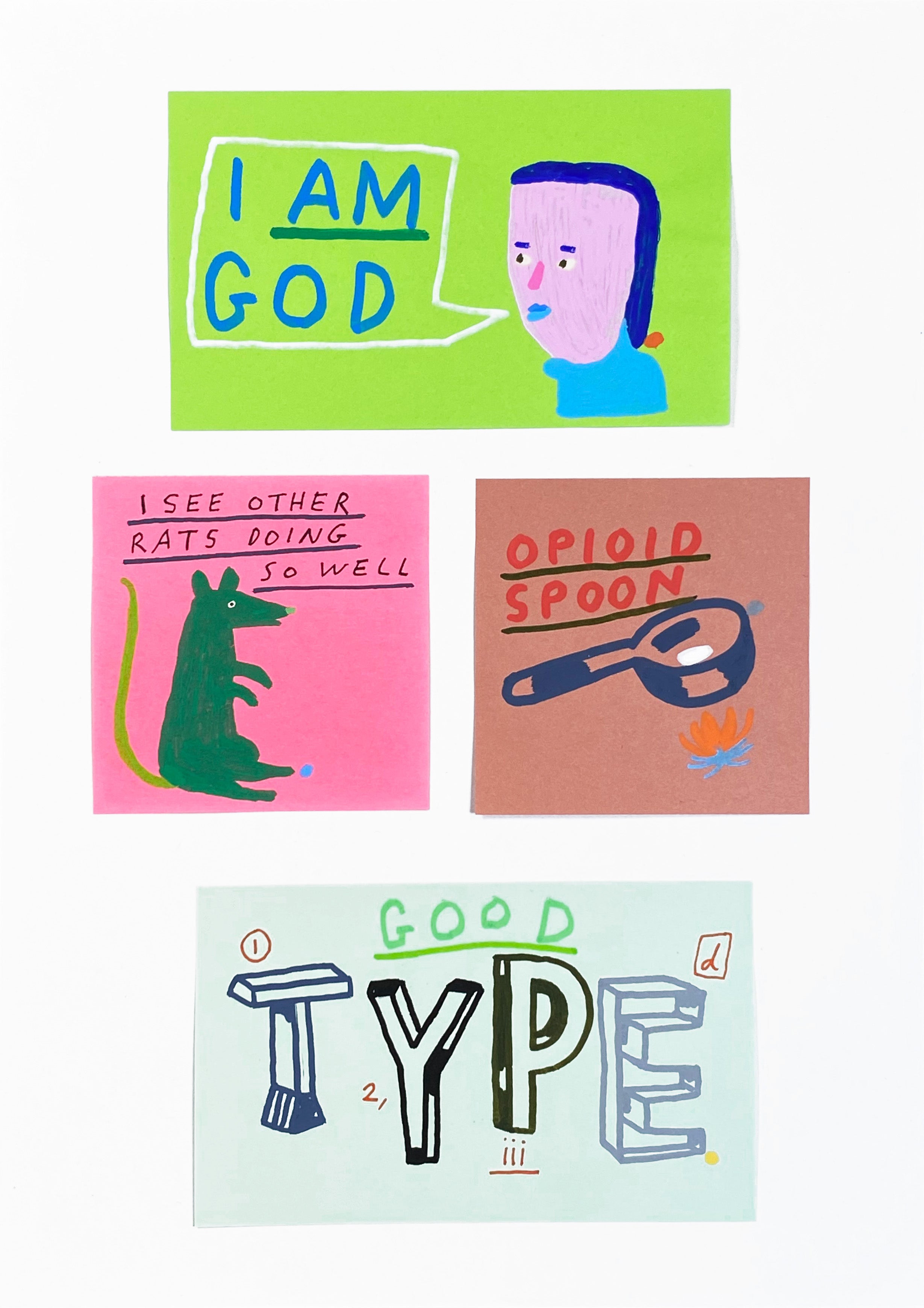 Medium: | Pen, Ink, Acrylic and Pencil on Post-It Notes, Mounted onto A4 Archival 185gsm Paper |
