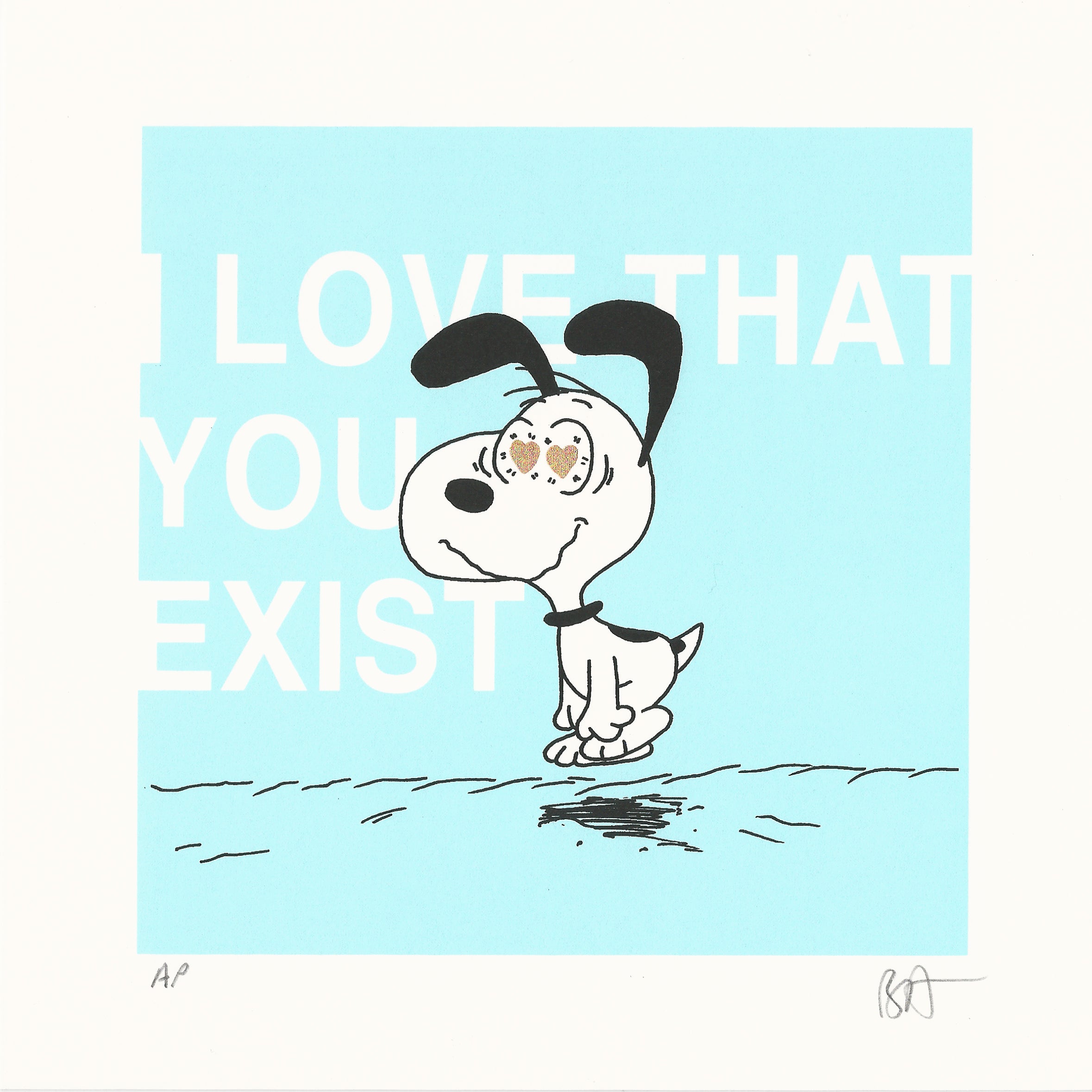 Medium: | 2 Colour Screenprint on Somerset Satin White 410gsm Paper with 24 Ct Gold Leaf Heart Eyes |