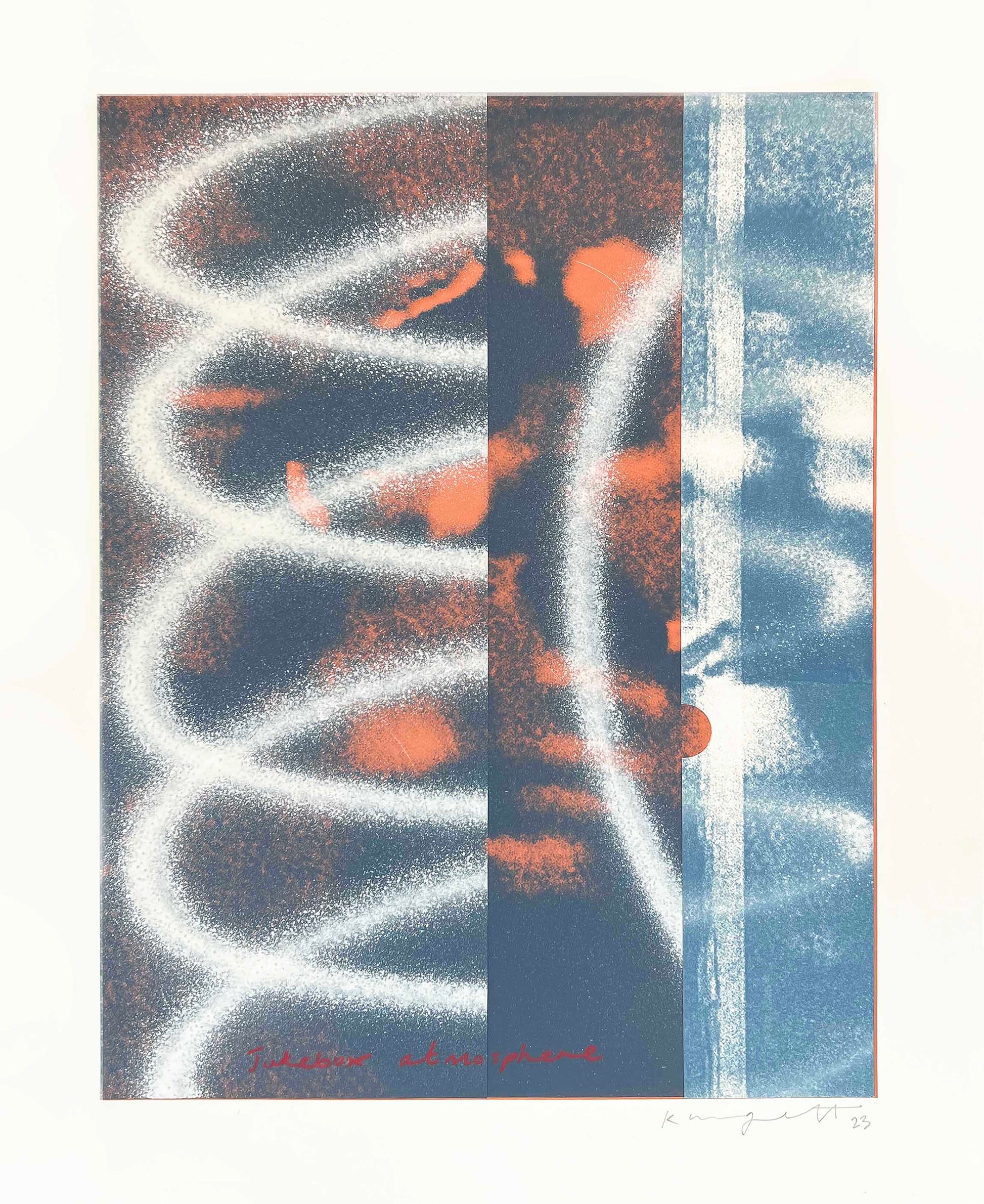 2 Colour Screenprint with Spraypaint, Collage and Crayon Overlays on Somerset Tub Sized 410gsm Paper |