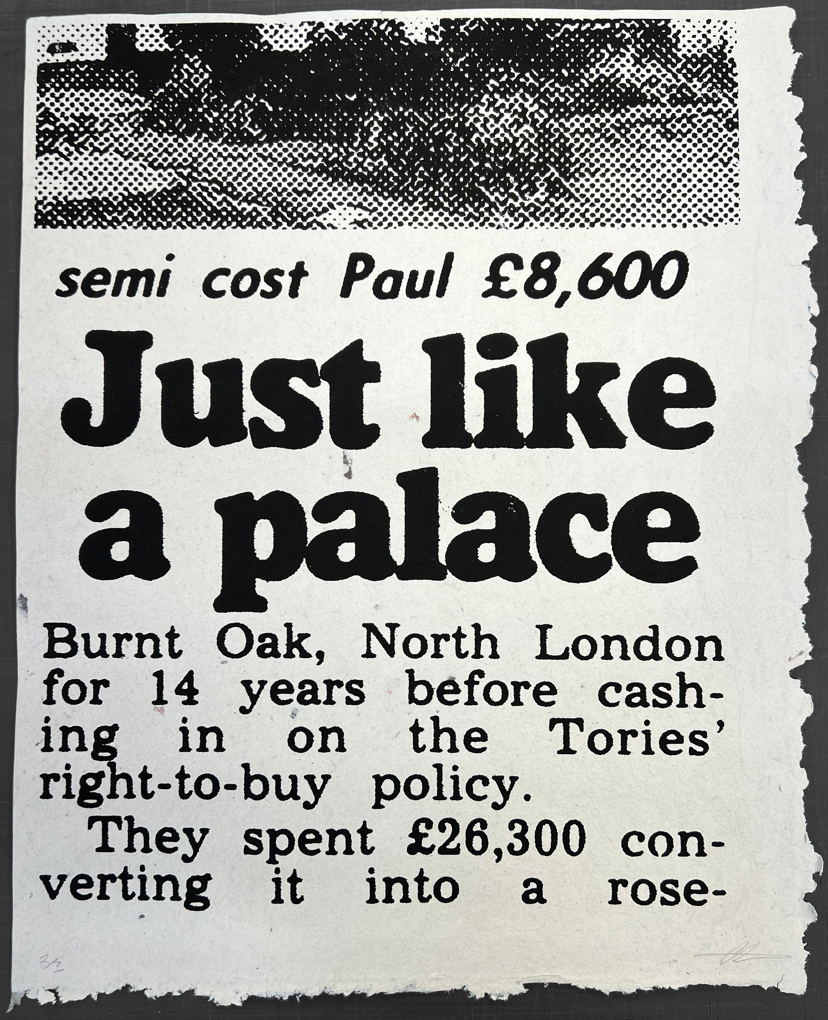 | Medium: | 1 Colour Screenprint on Repulped Sun Newspaper |