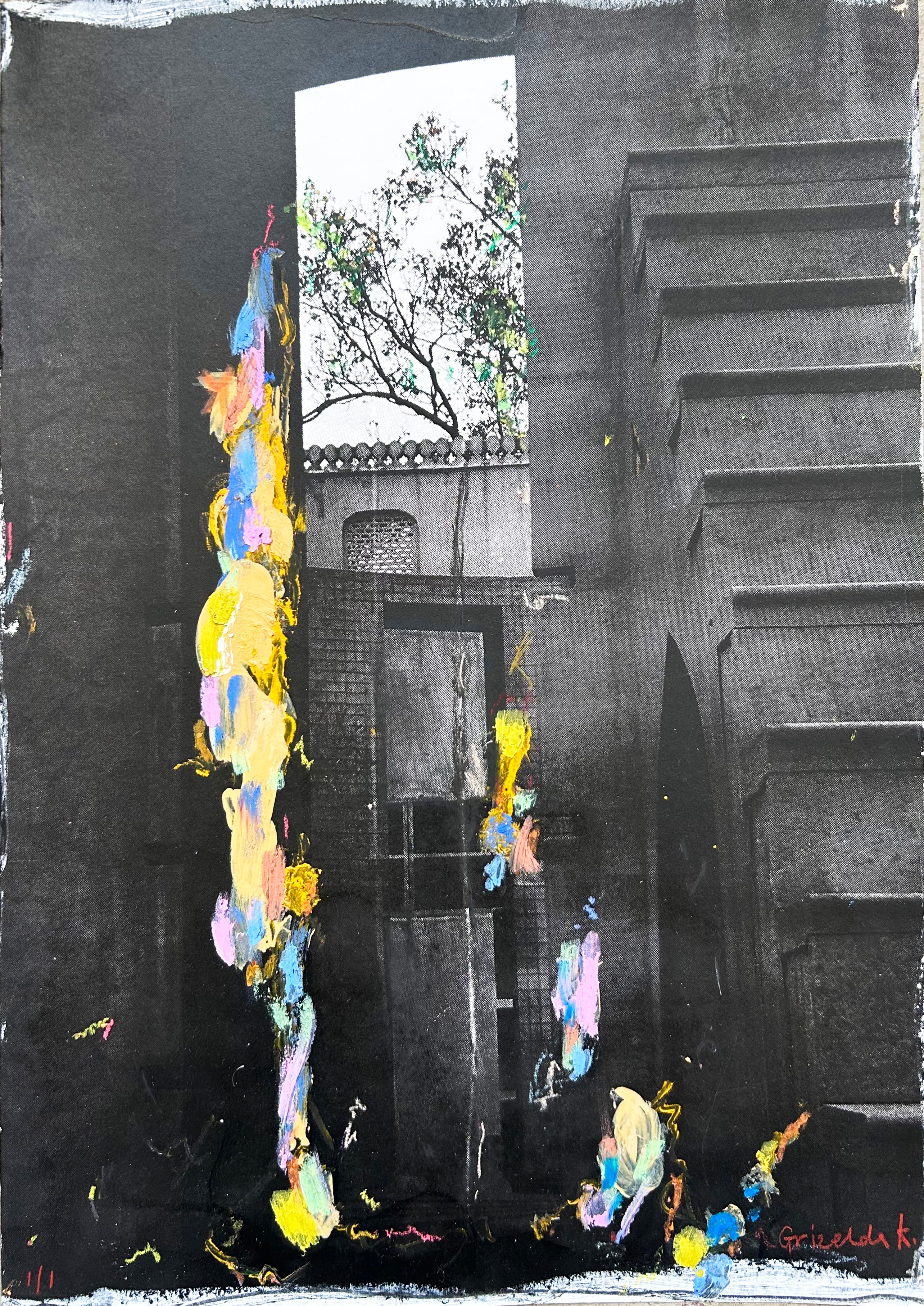 1 Colour Screenprint with Unique Oil Pastel and Paint Overlays on Somerset Satin 300gsm Paper |