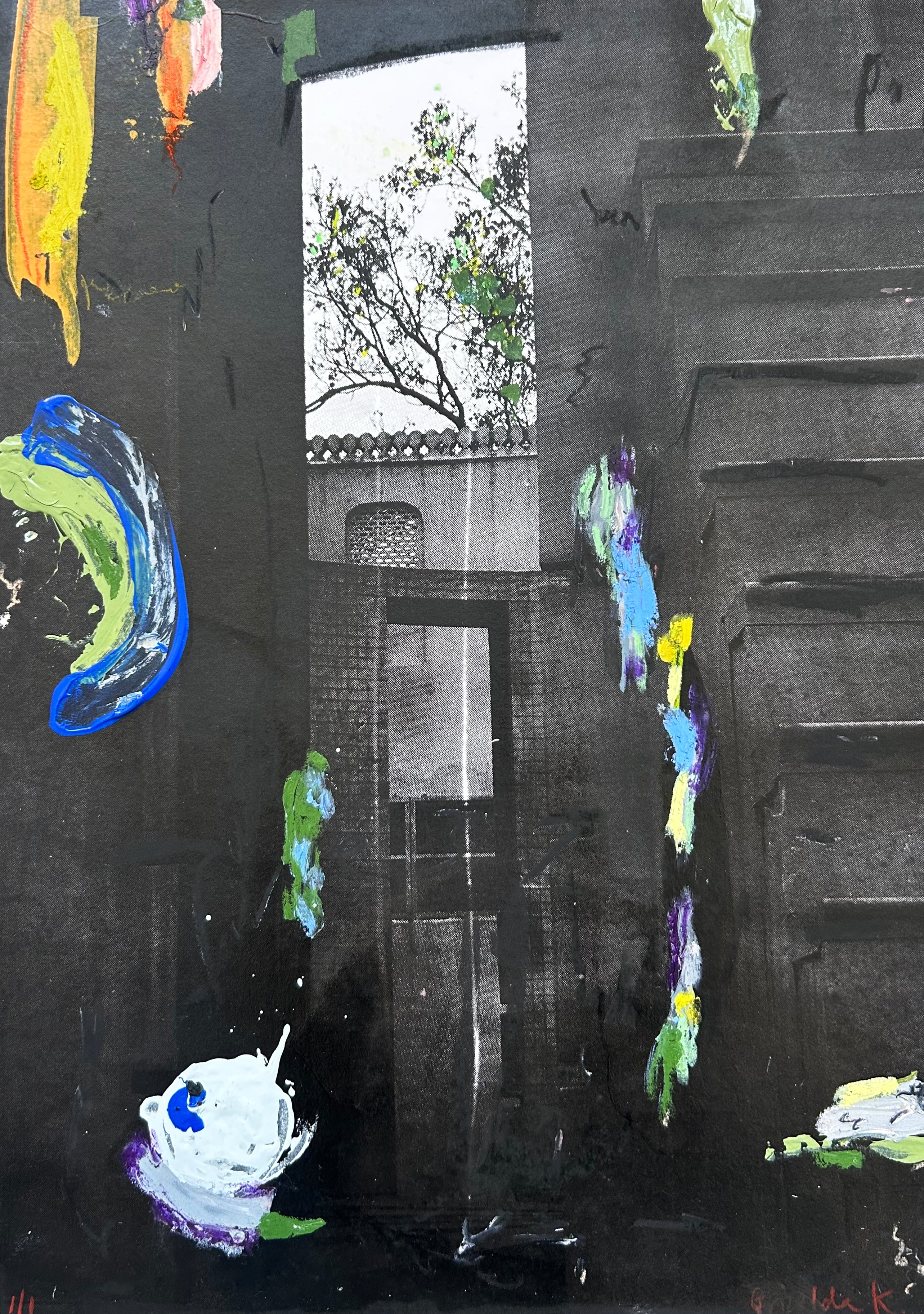 1 Colour Screenprint with Unique Oil Pastel and Paint Overlays on Somerset Satin 300gsm Paper |