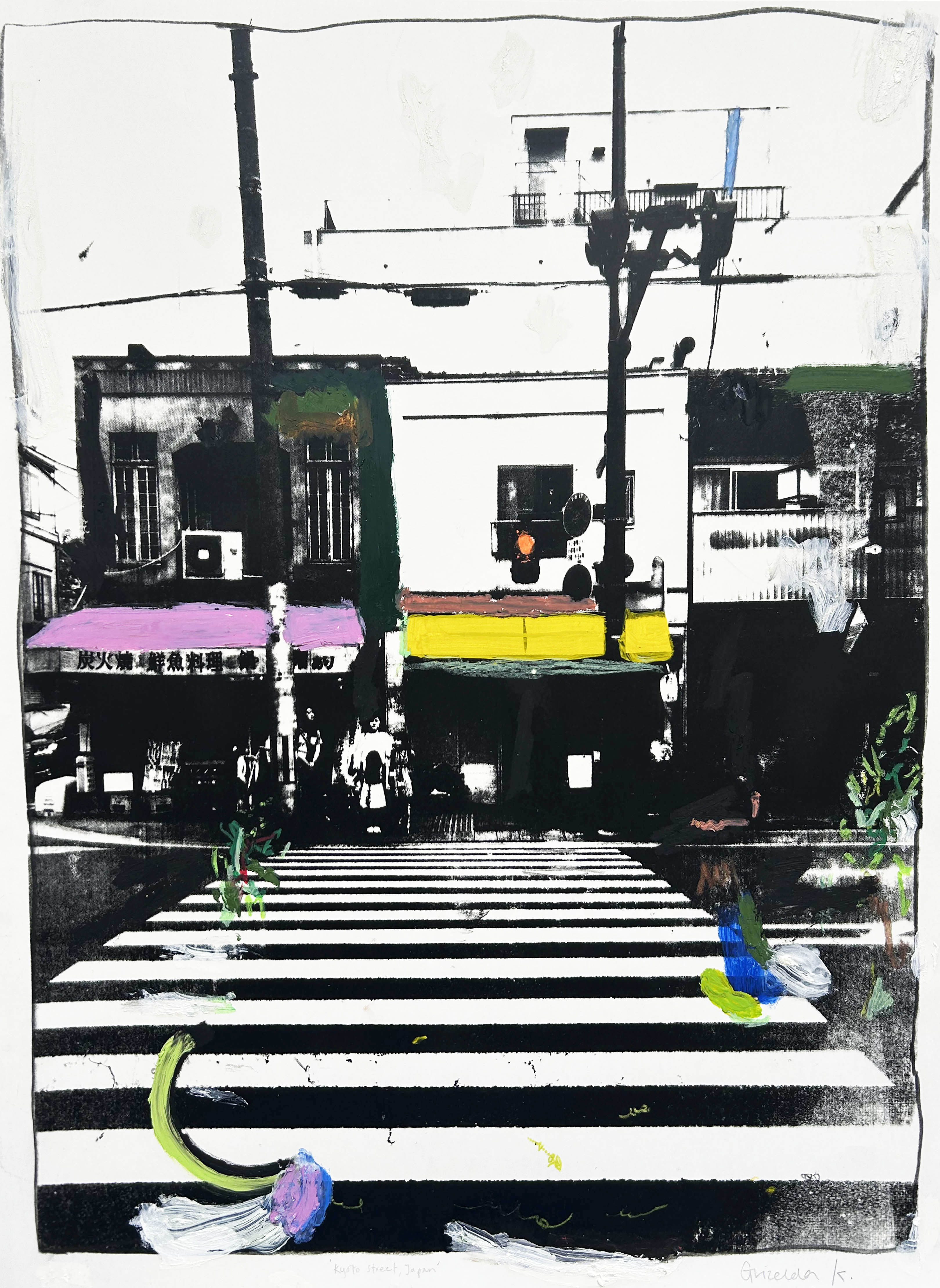 1 Colour Screenprint with Unique Oil Pastel and Paint Overlays on Somerset Satin 300gsm Paper |