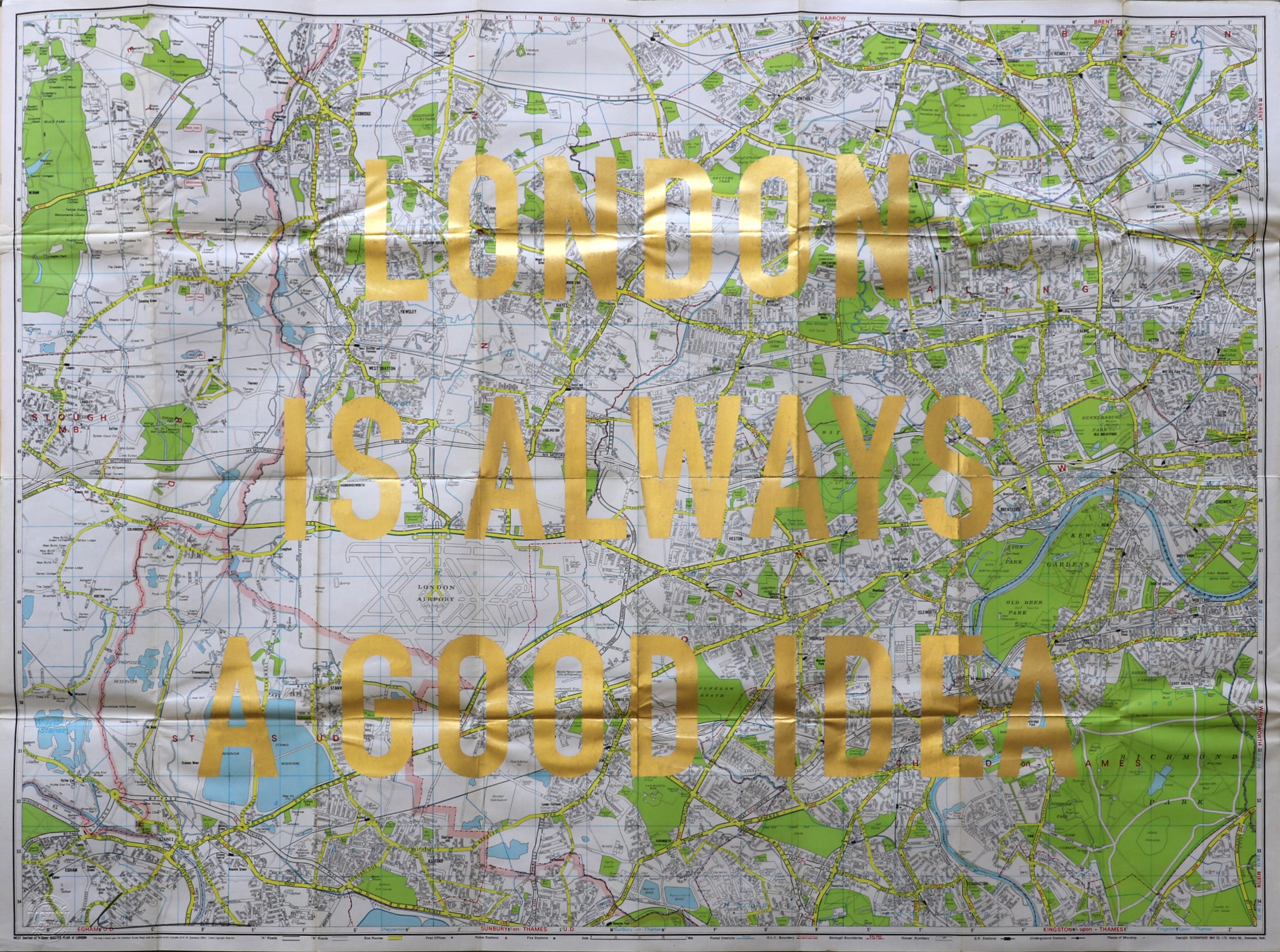 Medium: | 1 Layer Screenprint with Gold Leaf Overlay on Vintage Map |