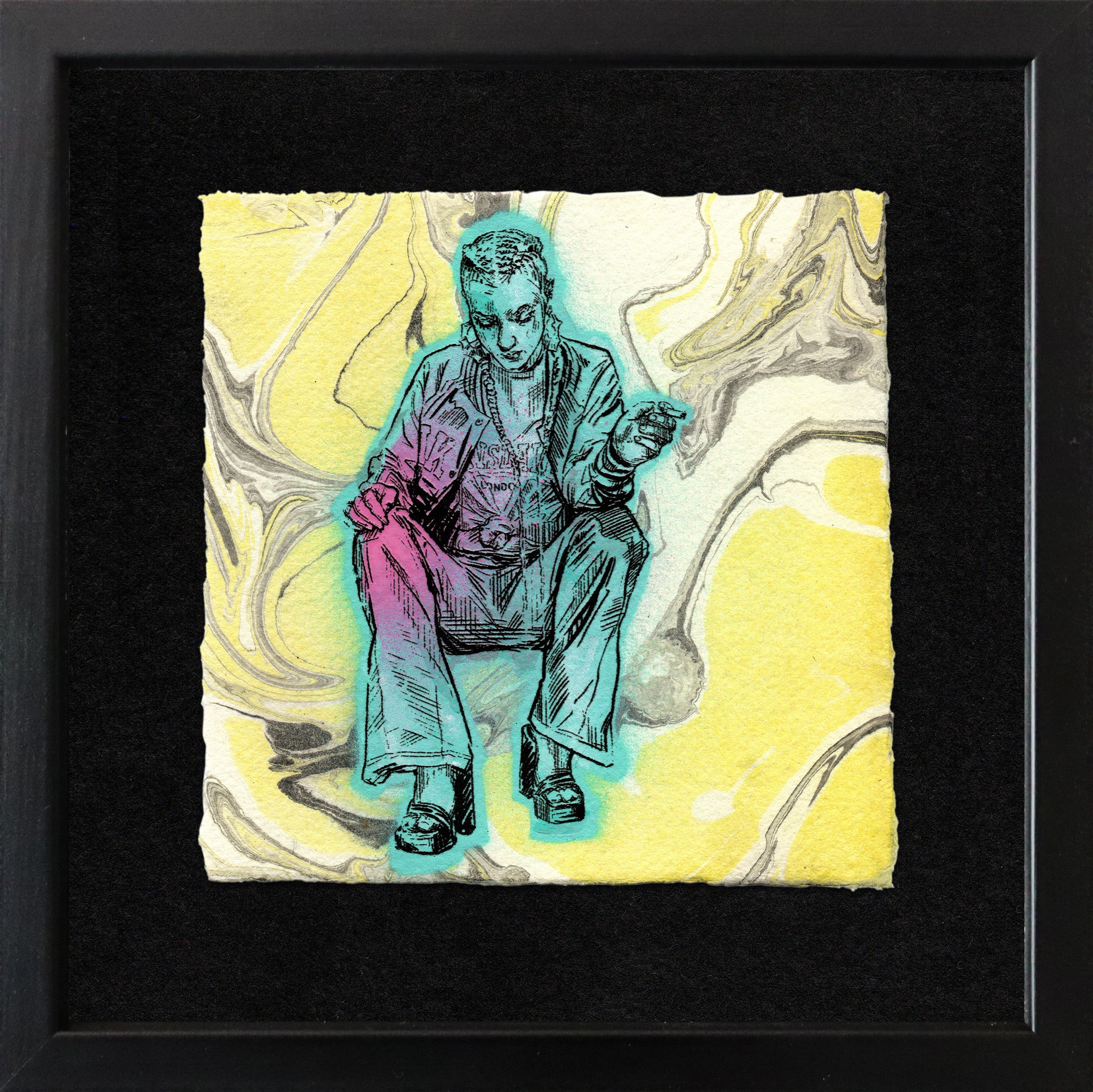 Medium: | Acrylic, Spraypaint and Silkscreen Transfer from Original Drawings on Hand Marbled Cotton Paper |