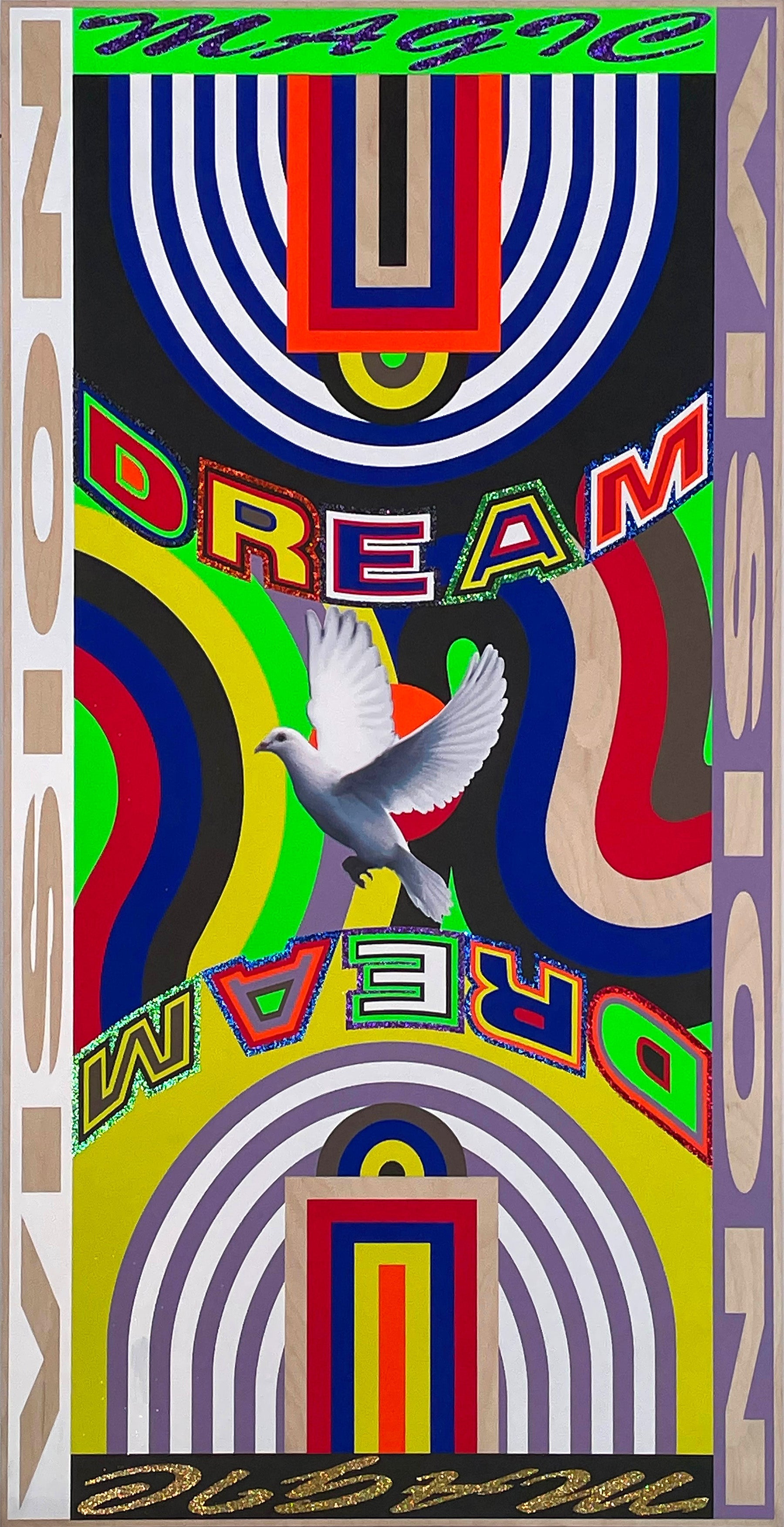 Medium: | 15 Colour Screenprint with Fades and Glitter Overlay on 12mm Birch Plywood |