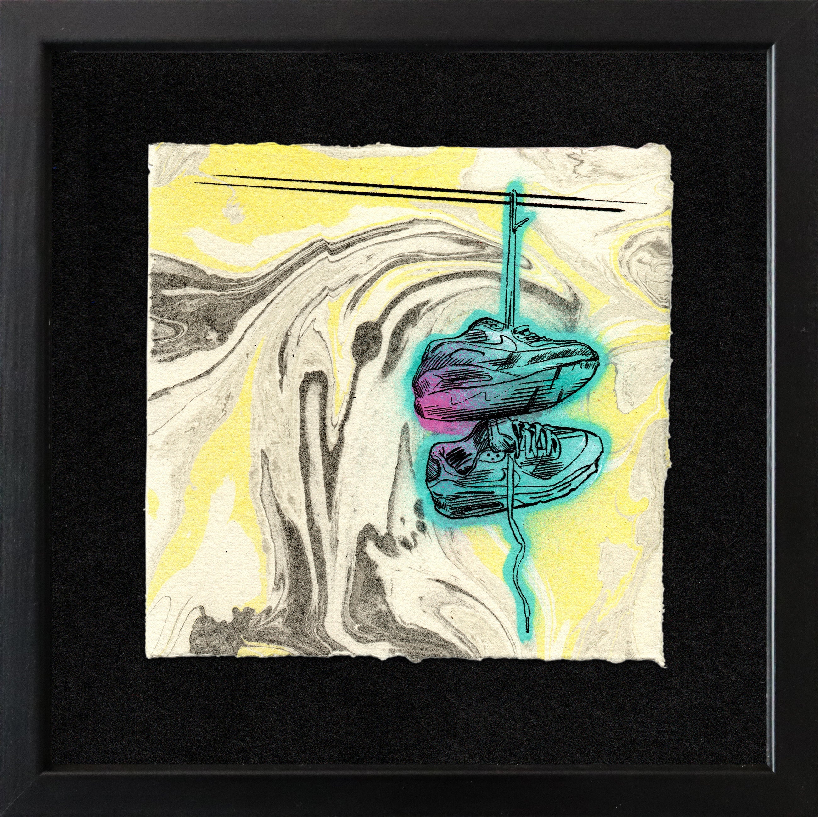 Medium: | Acrylic, Spraypaint and Silkscreen Transfer from Original Drawings on Hand Marbled Cotton Paper |