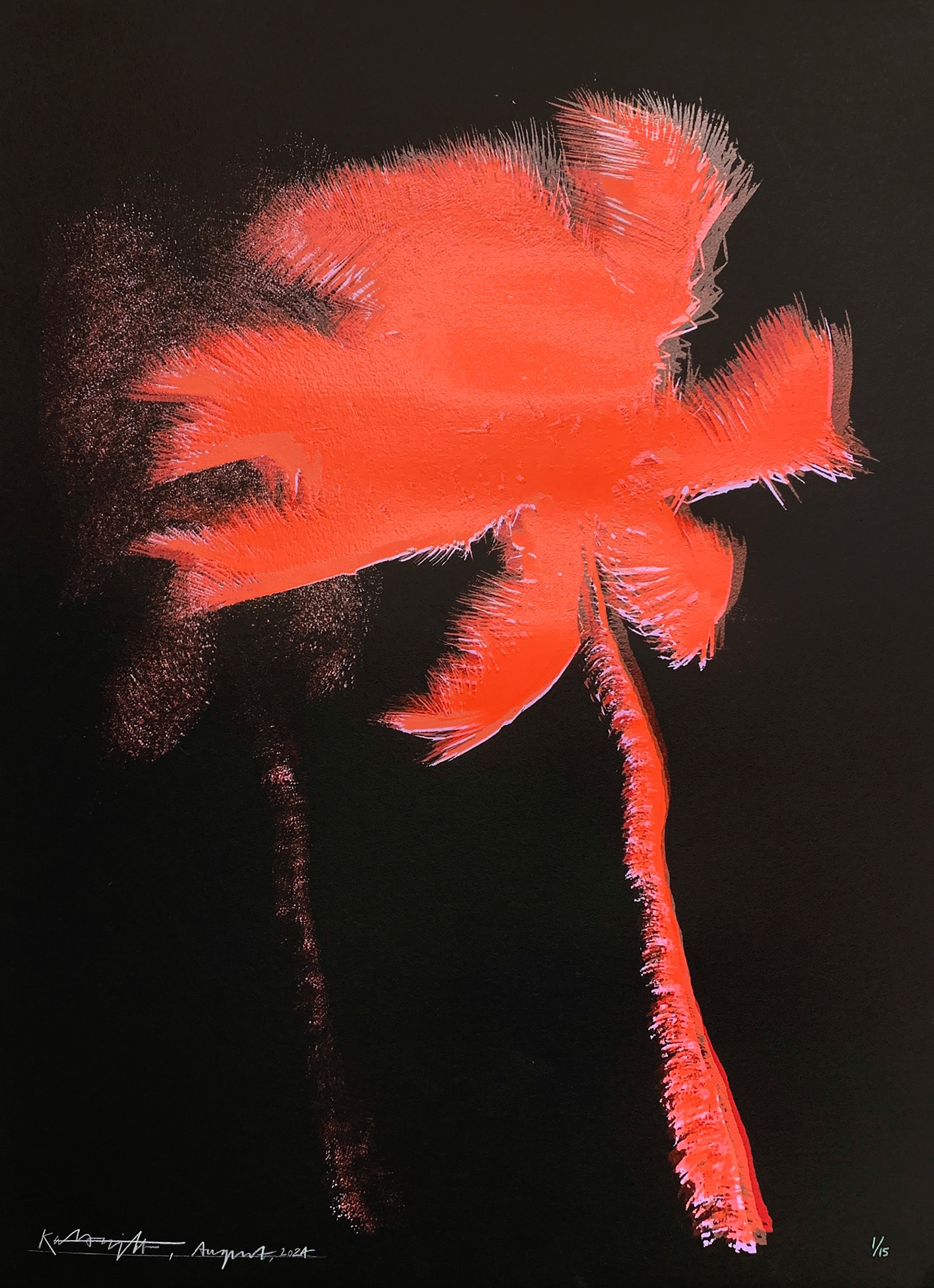 Medium: | 3 Colour Gloss-Based Screenprint on Somerset Velvet Black 400gsm Paper |