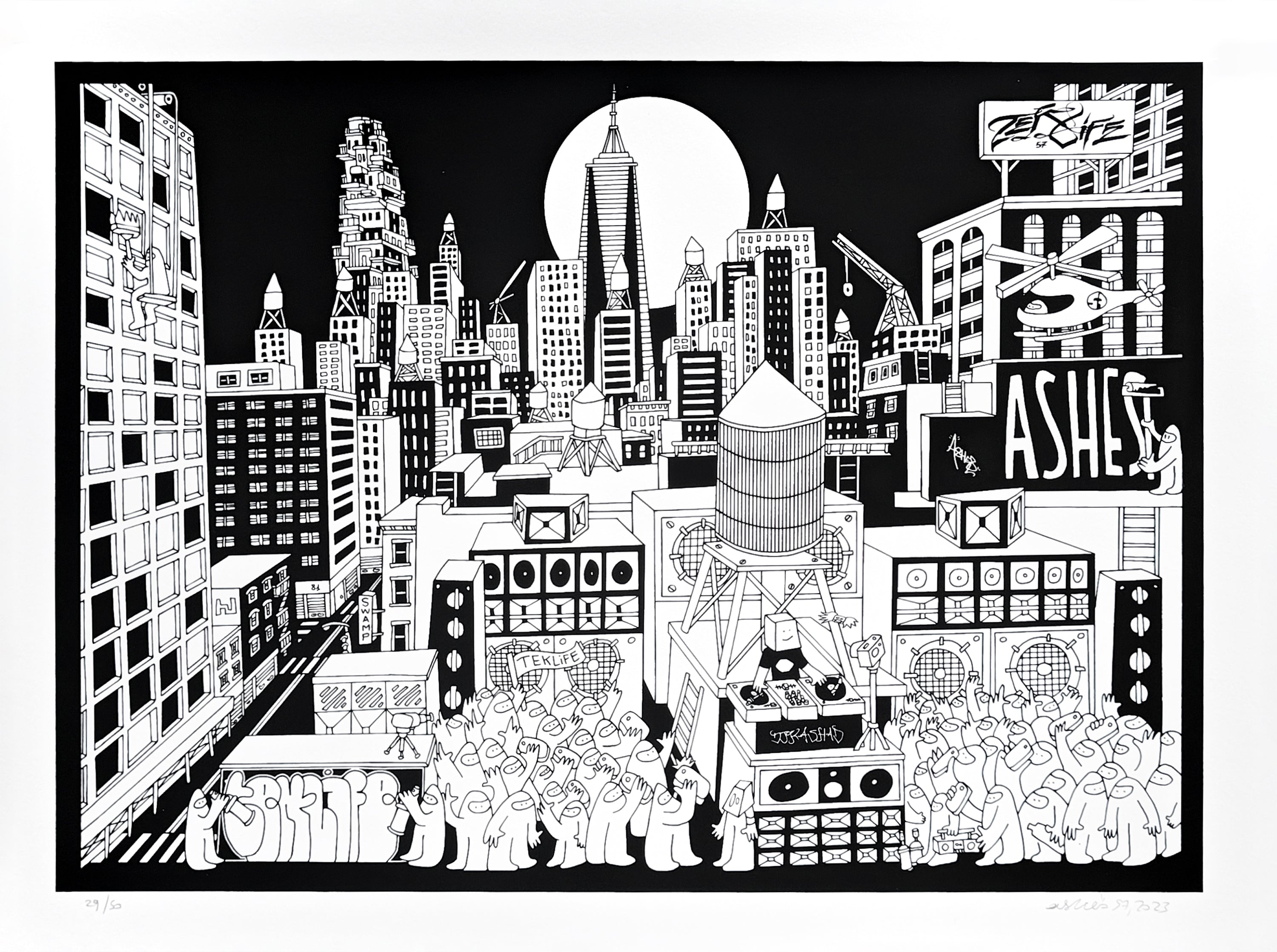 | Medium: | 1 Colour Screenprint on 110 lb White French Paper |
