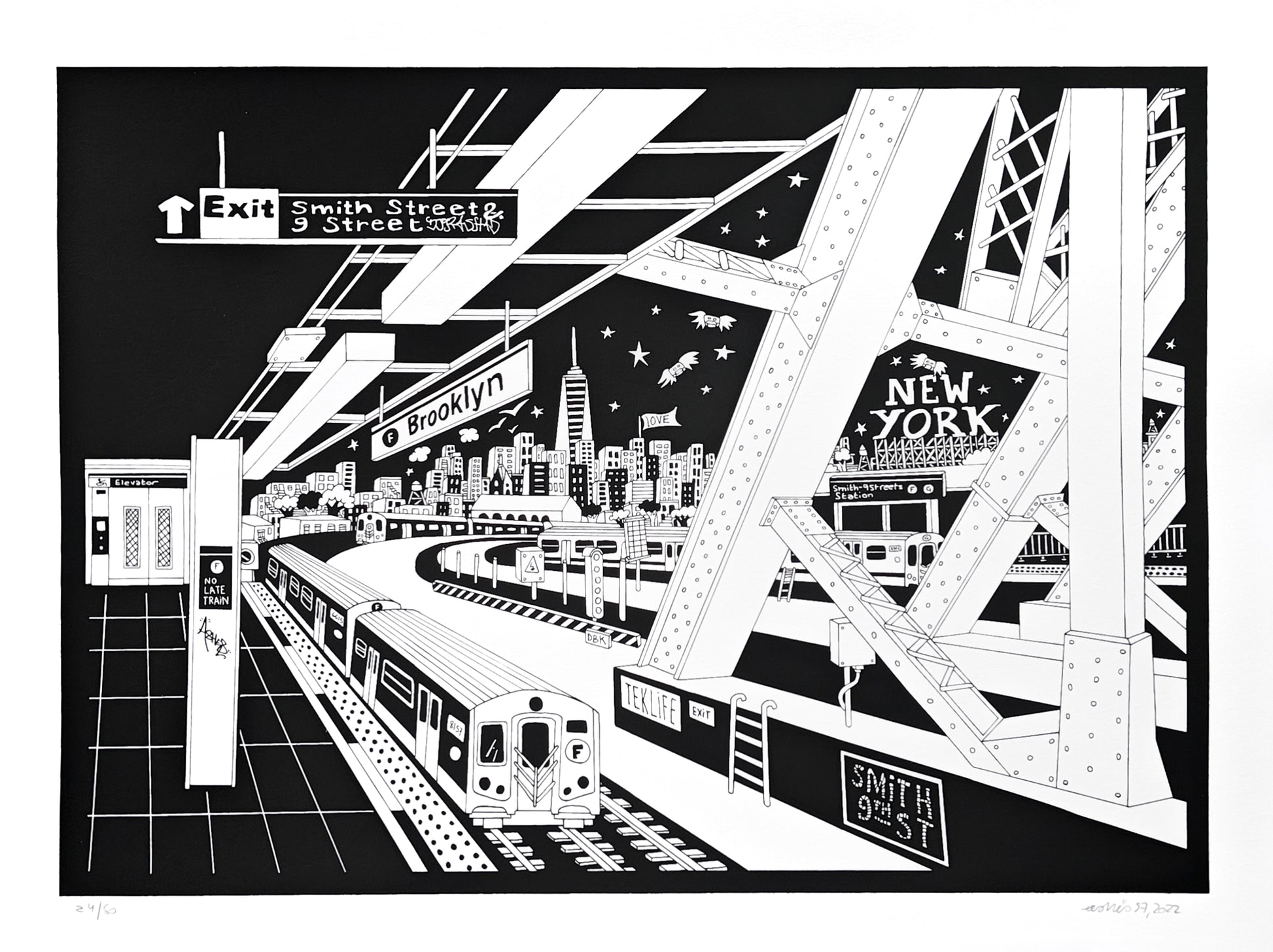 | Medium: | 1 Colour Screenprint on 110 lb White French Paper |