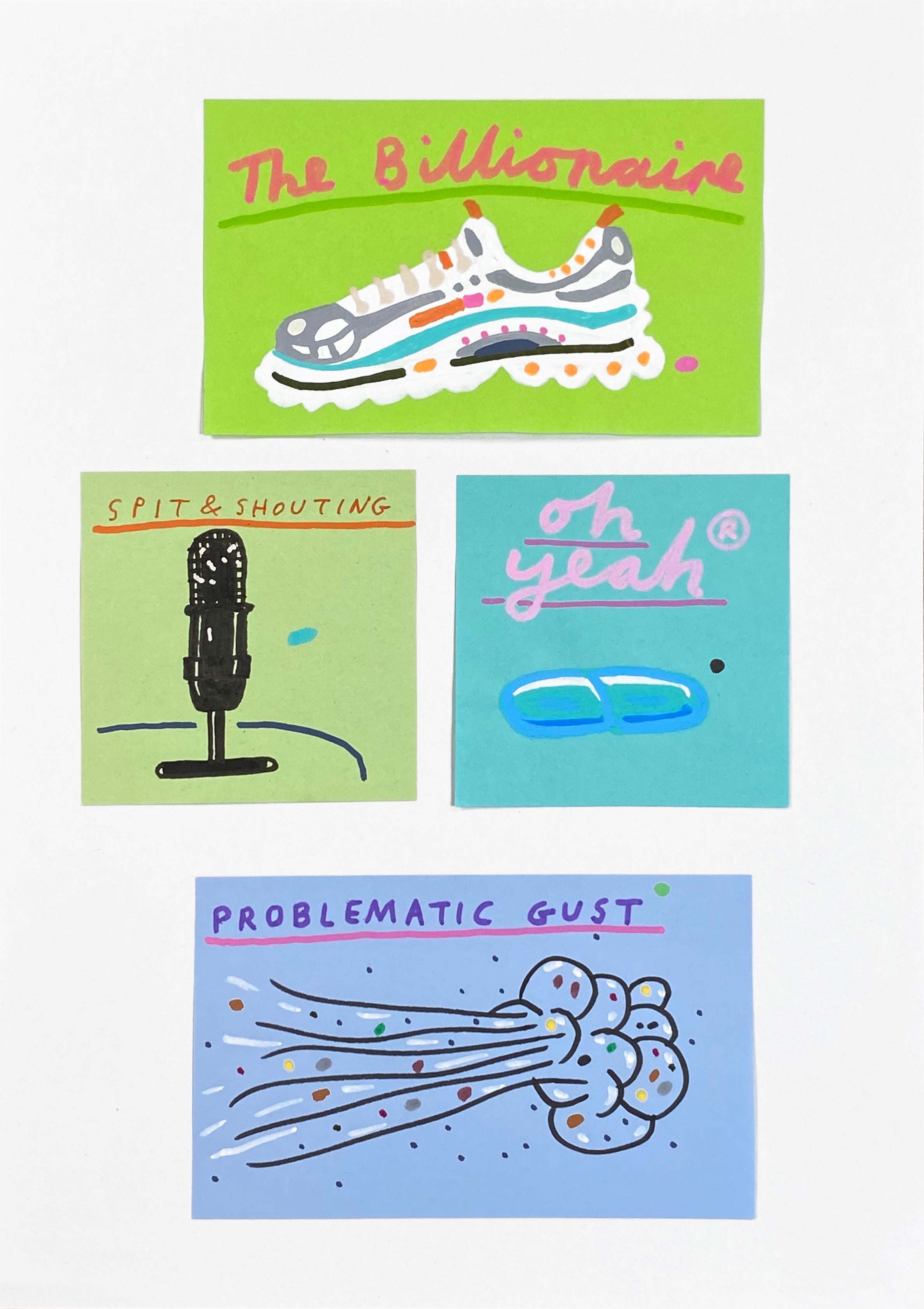 Medium: | Pen, Ink, Acrylic and Pencil on Post-It Notes, Mounted onto A4 Archival 185gsm Paper |