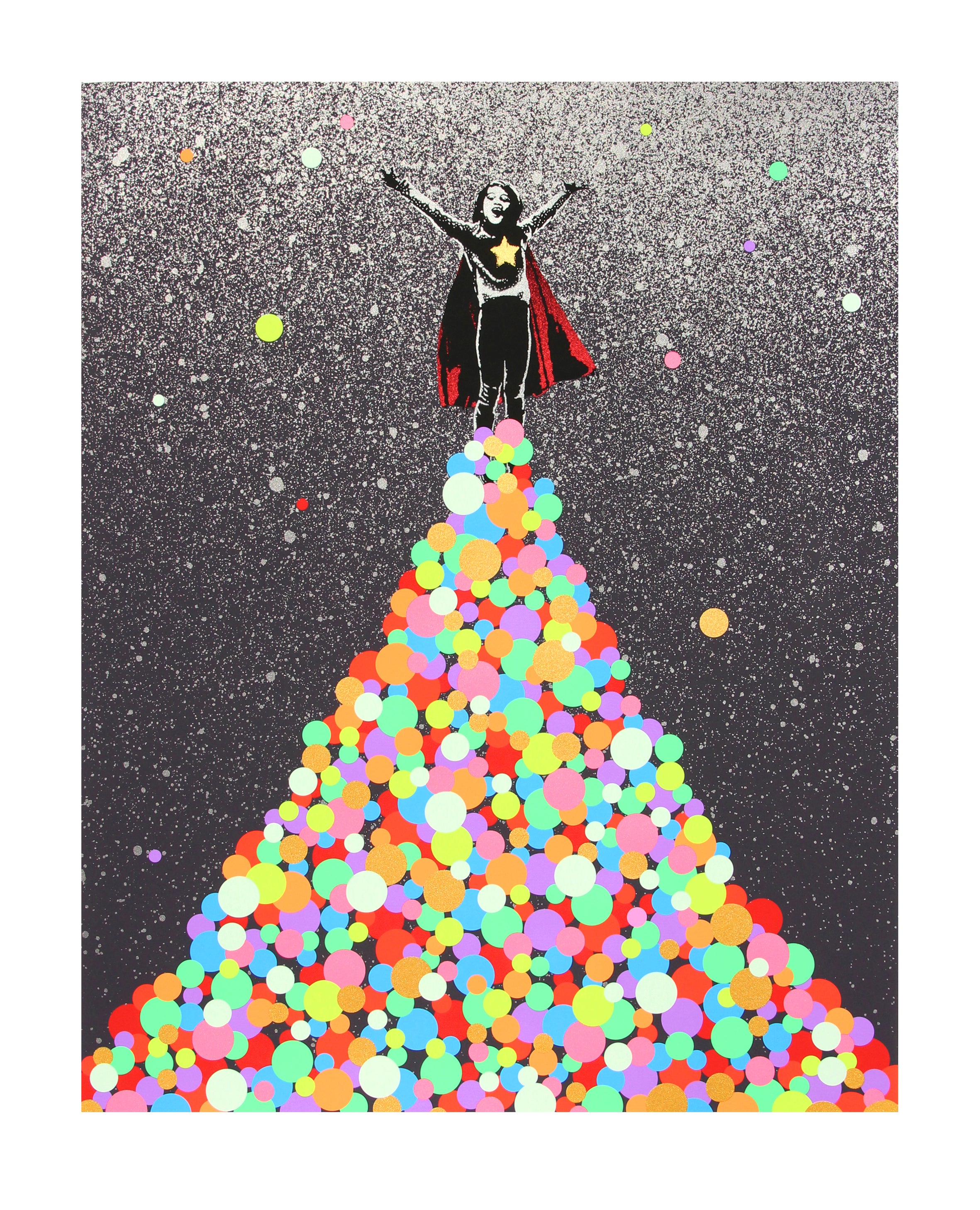 Medium: | Archival Inkjet with Hand Spray Painted Finishing and 3 Colour Screenprint Overlays on Hahnemuhle Photo Rag 308gsm Paper |