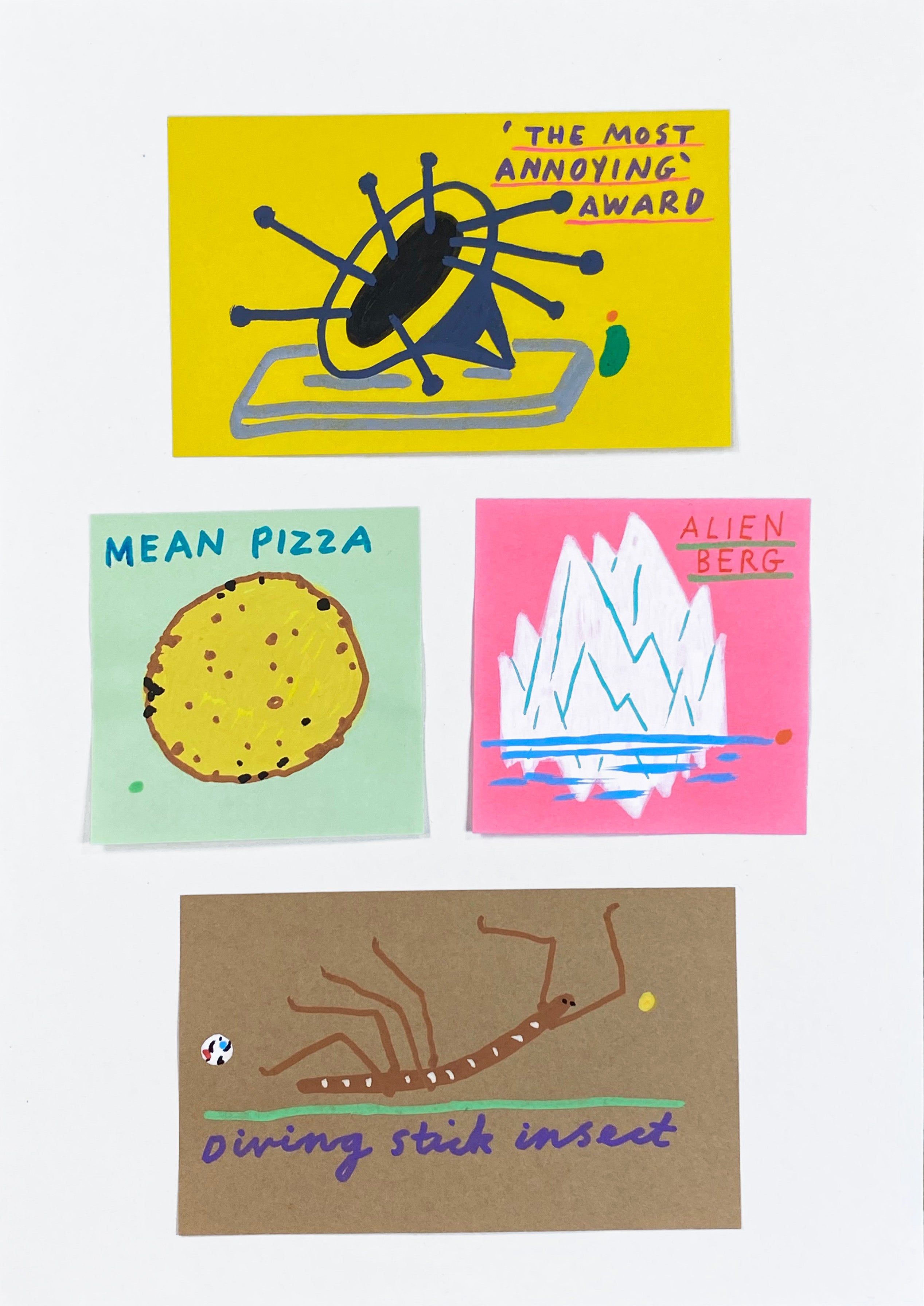 Medium: | Pen, Ink, Acrylic and Pencil on Post-It Notes, Mounted onto A4 Archival 185gsm Paper |