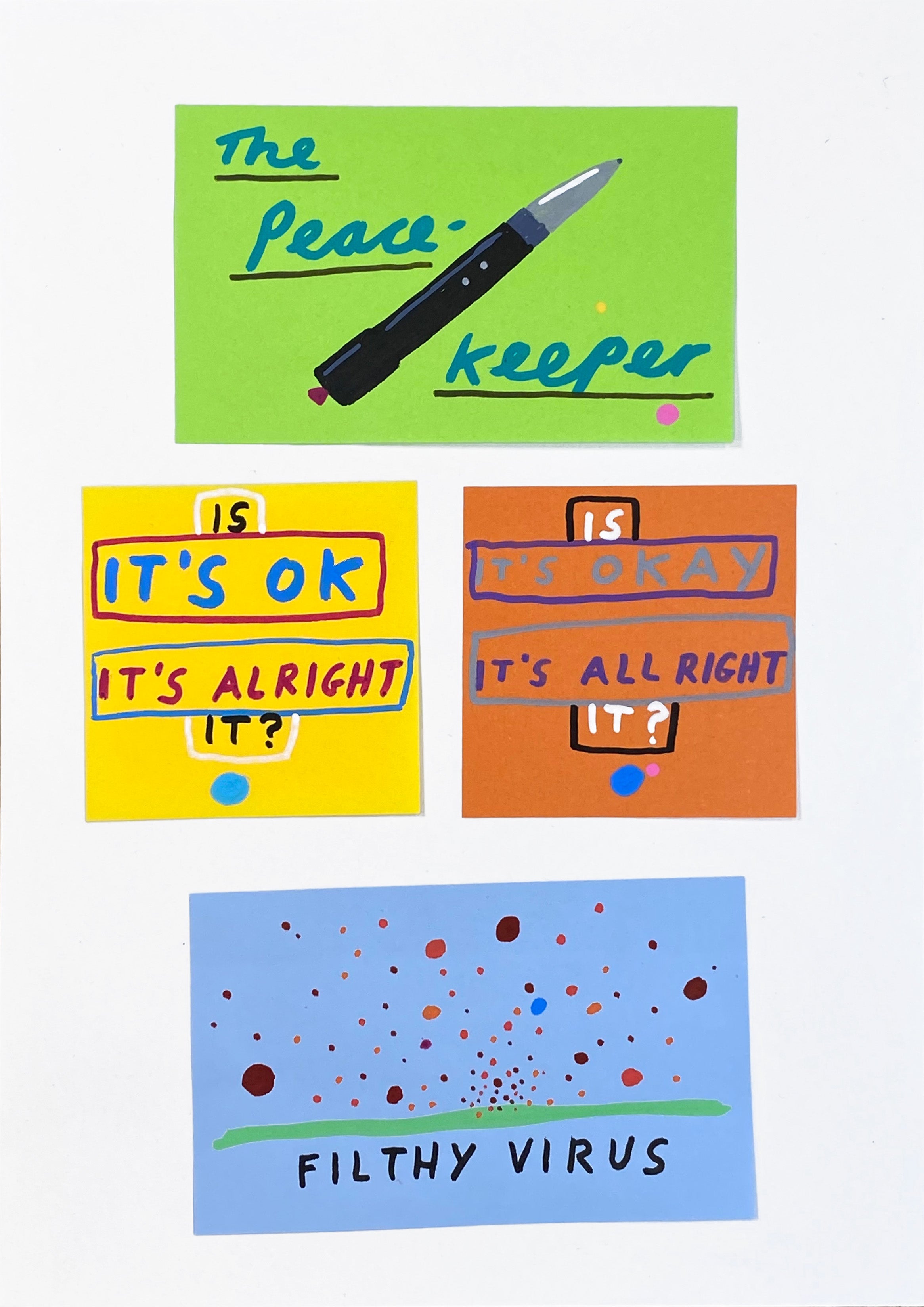 Medium: | Pen, Ink, Acrylic and Pencil on Post-It Notes, Mounted onto A4 Archival 185gsm Paper |
