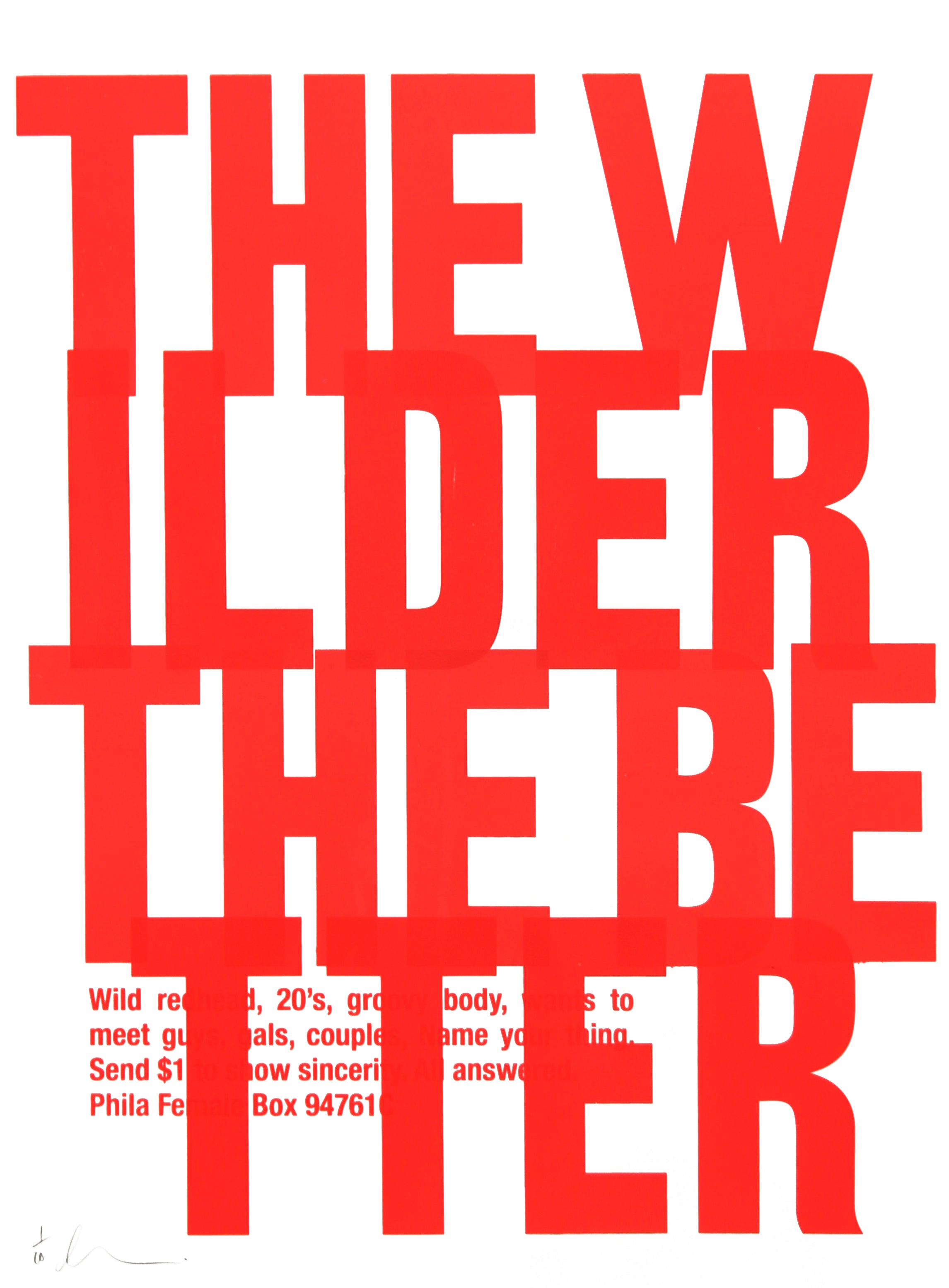 Notes: | This print was created by the artist to be sold singularly or as a pair. The price for a single unframed print is £250 or £450 for the pair and the matching print is titled 'THE WILDER THE BETTER'. This edition was printed by the artist himself and the full edition features slight smudges in the ink and inconsistencies within the print. This was intended throughout the edition and all marks made show and emphasise the hand-made process. |