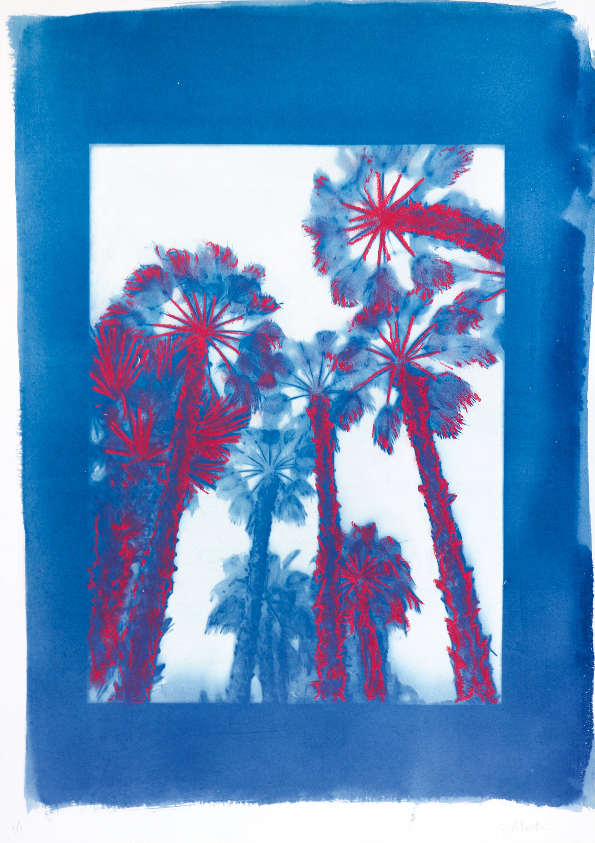 One of a Kind Cyanotype & Chalk Pastel on Paper |