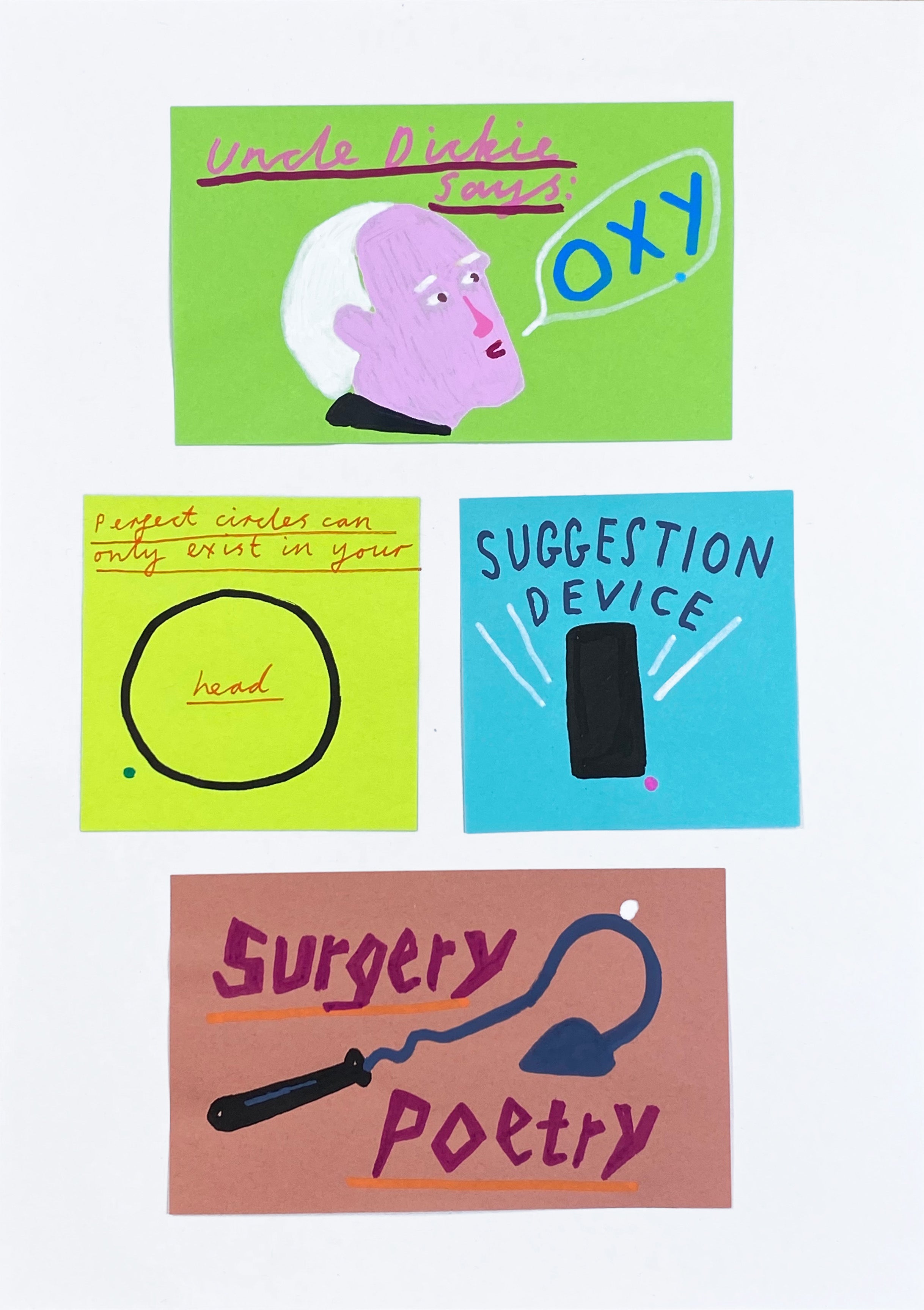 Medium: | Pen, Ink, Acrylic and Pencil on Post-It Notes, Mounted onto A4 Archival 185gsm Paper |