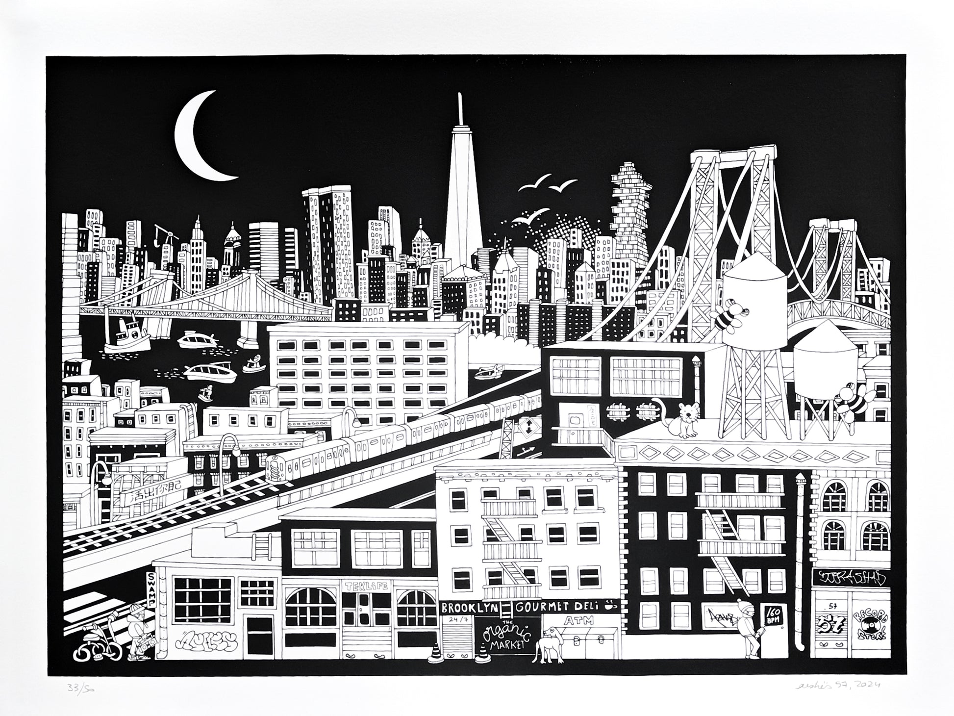 | Medium: | 1 Colour Screenprint on 110 lb White French Paper |