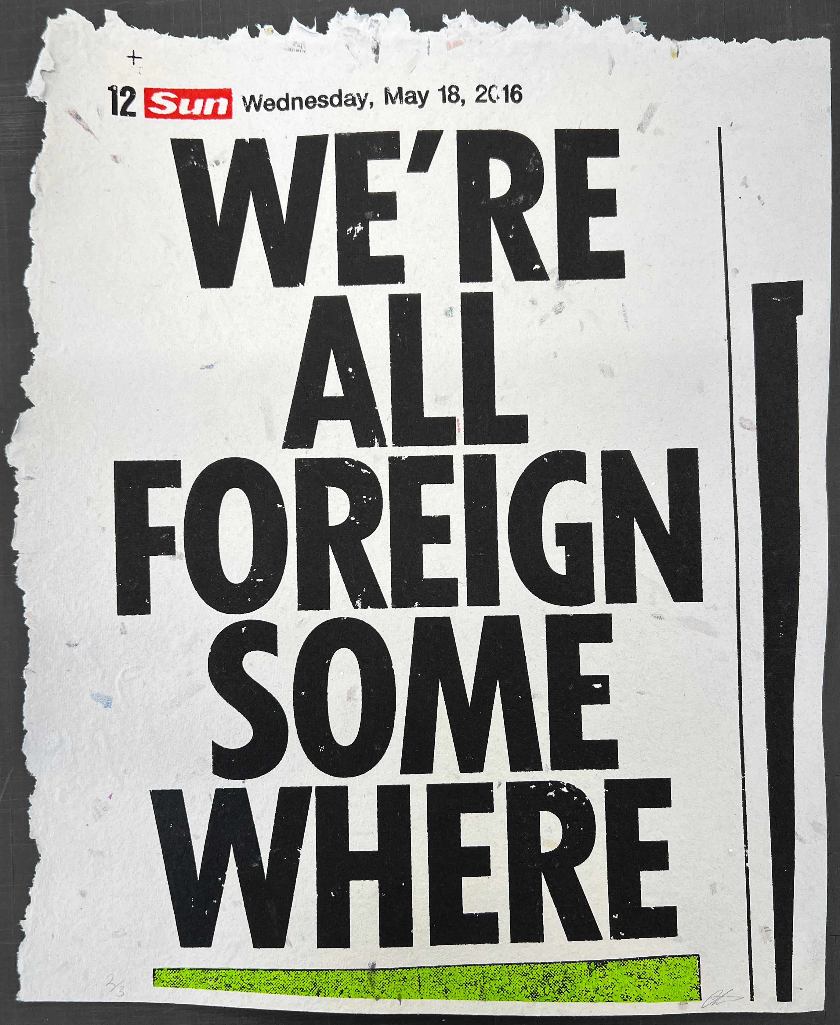 Medium: | 3 Colour Screenprint on Repulped Sun Newspaper |