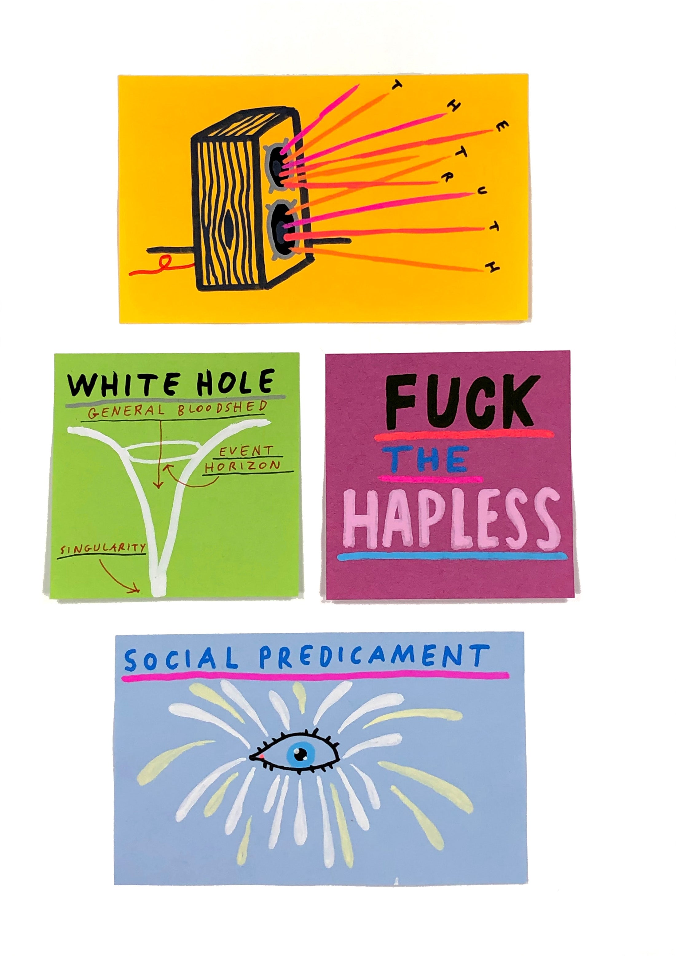 Medium: | Pen, Ink, Acrylic and Pencil on Post-It Notes, Mounted onto A4 Archival 185gsm Paper |