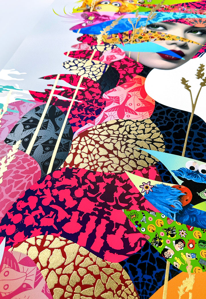 Miss Bugs was founded in the early part of 2007, originally coming from a background in photography and graphics. Working in partnership, they developed fast, spontaneous working methods, cutting and pasting existing images; ‘remixing and sampling classics’ in art to make new pieces with their own mark.